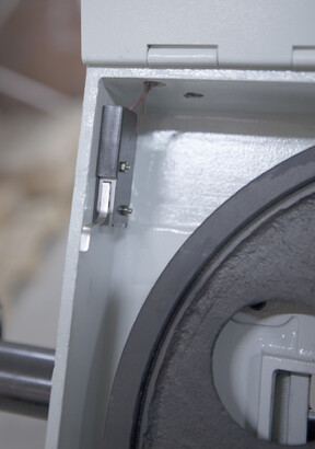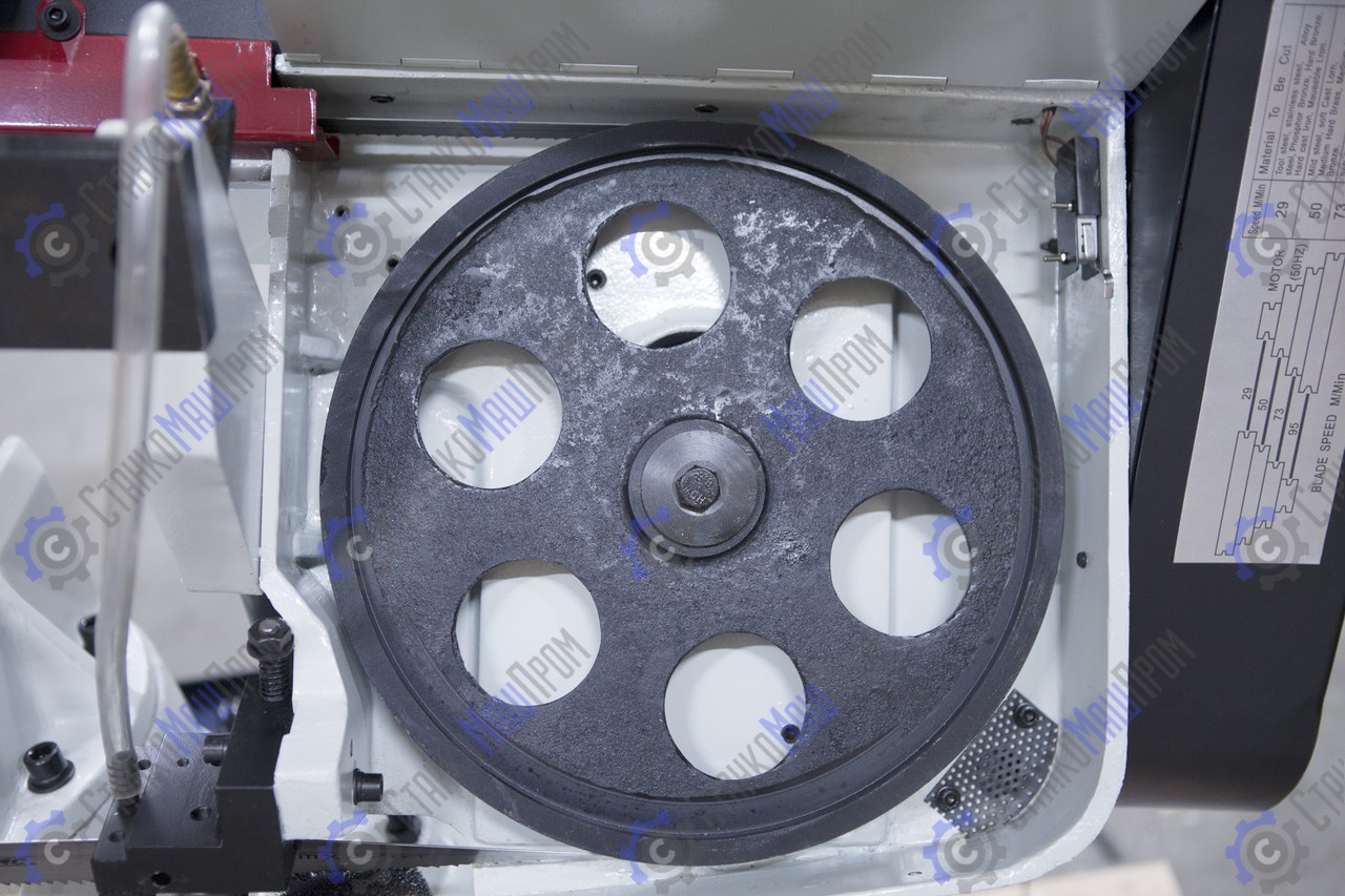 ![]() | Шкив станка и предохранительный датчик при поднятой крышке рамы (фото №2). |