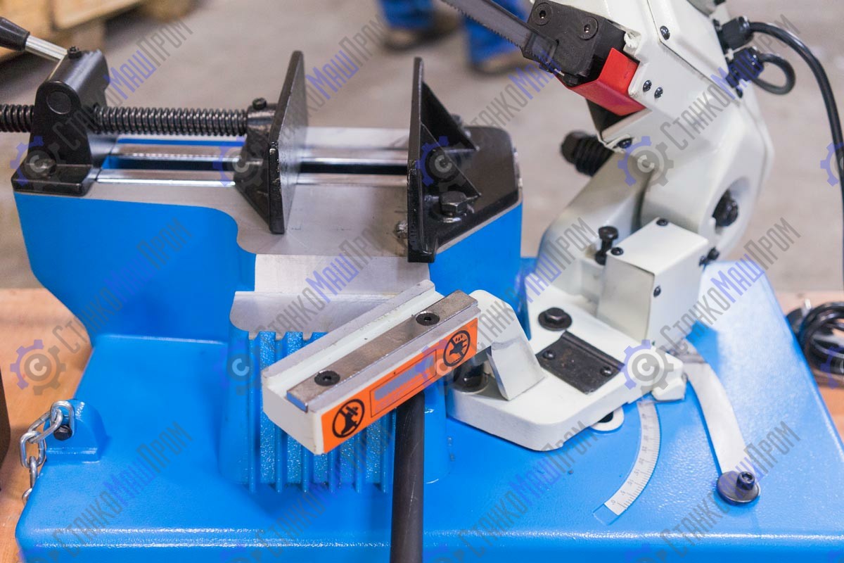 Станок используется в основном для работы с заготовками из низкоуглеродистой и углеродистой стали, т.к. станок оснащён и укомплектован стандартным полотном 13 мм М42. Это позволяет работать с небольшими заготовками из разных материалов, но для работы со средними заготовками с хорошей эффективностью реза и стойкости – необходимо правильно подбирать используемый материал.