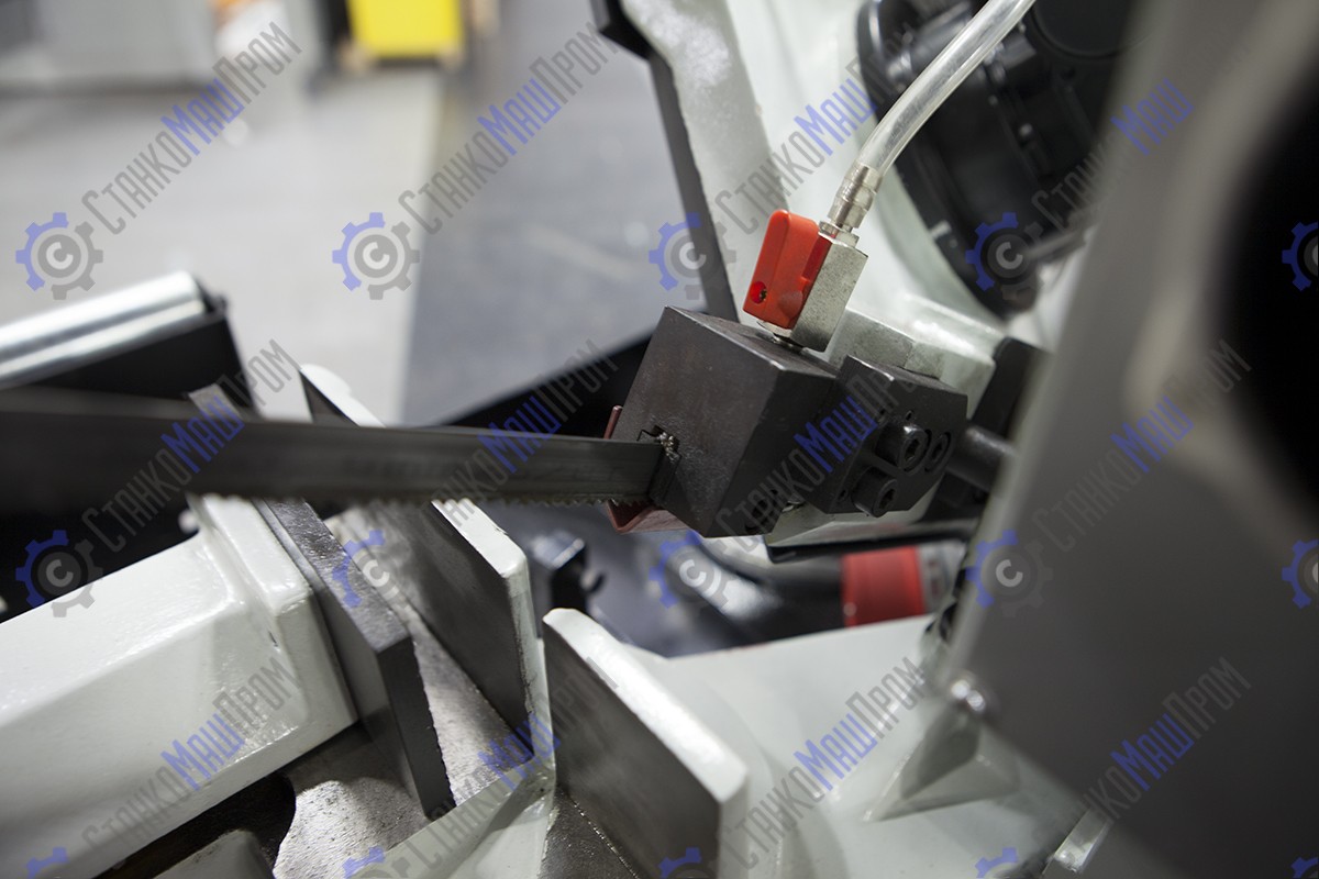 Тиски с системой быстрого отвода ускоряют процесс смены заготовки (ускоренный отвод подвижной губки происходит без вращения маховика). Зажим заготовки осуществляется тисками вручную, подача заготовки - также вручную. Наличие система СОЖ в стандартной комплектации – позволяет добиться высокой производительности.
