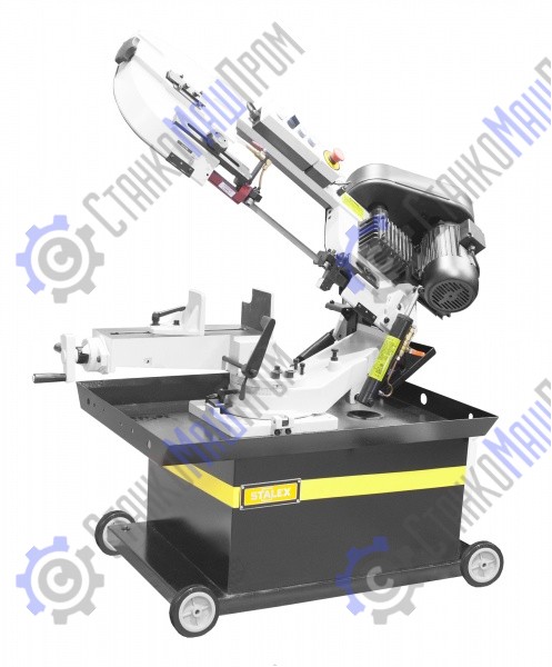 Станки Stalex BS-712 имеют высоту полотна 20мм, в зависимости от комплектации поворот губок тисков или возможность поворота рамы пилы, а также привод клиноременной или зубчатый. Система СОЖ в стандартной комплектации.