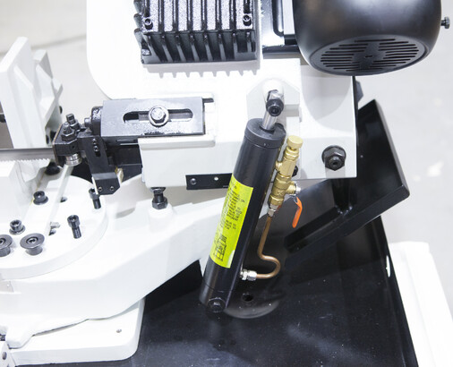 ![]() | На станках с гидроразгрузкой управление и процесс резки (запуск пилы – опускание рамы – остановка пилы) происходит за счёт запуска двигателя и регулировки гидроцилиндра. Гидроцилиндр имеет переключатель вкл./выкл. гидравлической системы и плавную регулировку опускания рамы верхним маховиком на дроссельном клапане. |