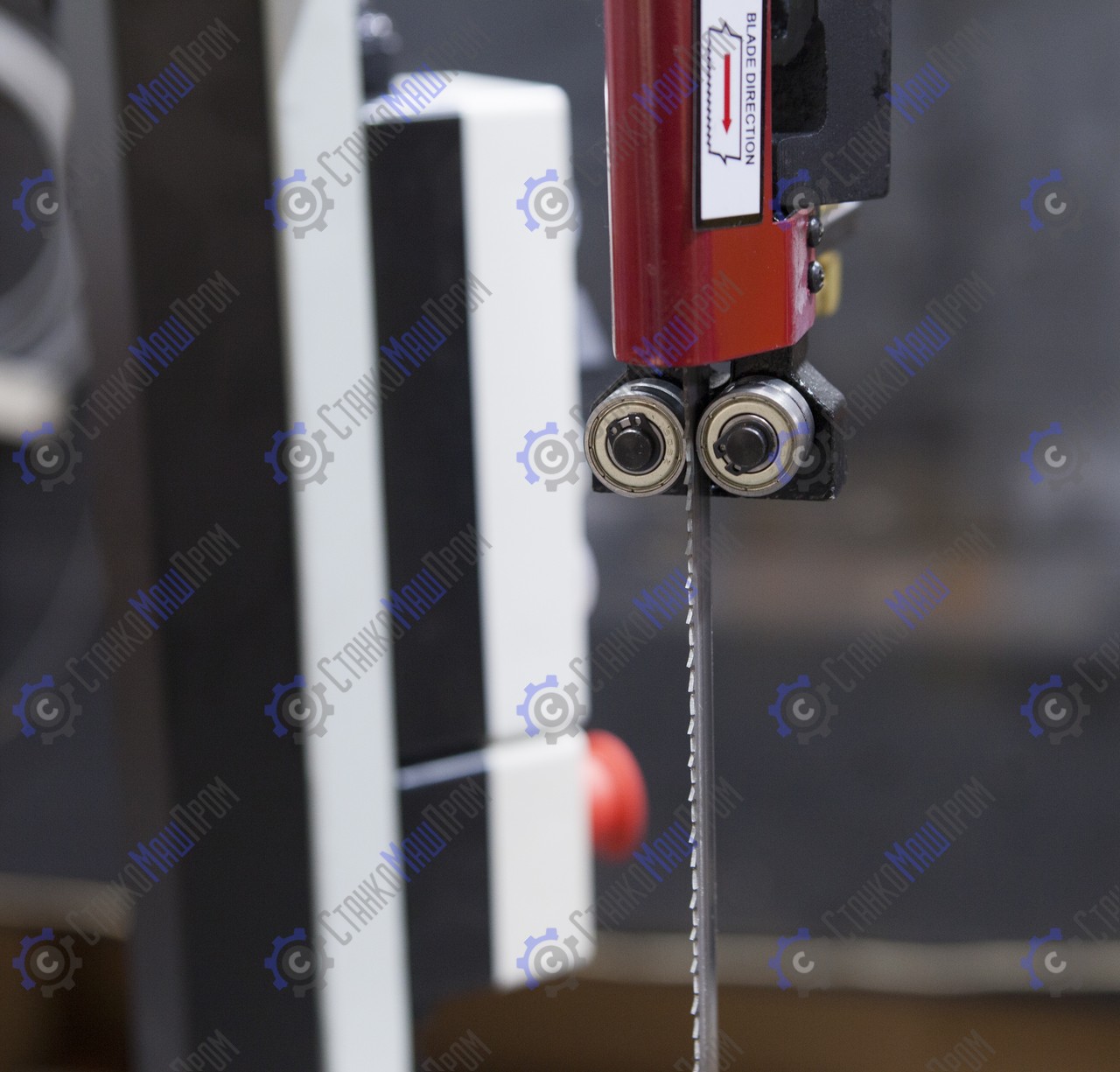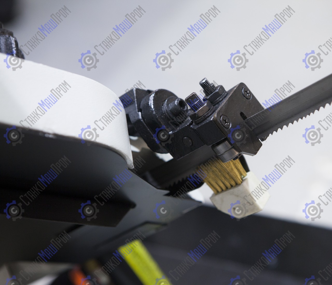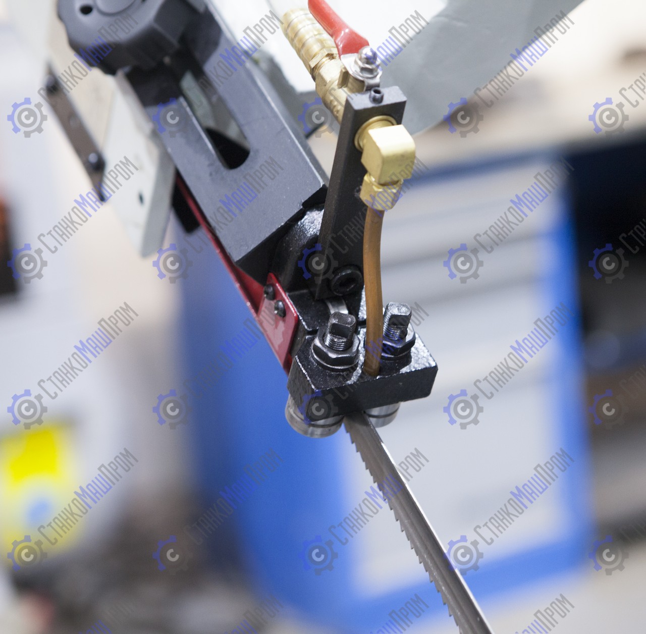 ![]() | Подвижная направляющая с роликовыми подшипниками натяжения полотна. Регулировочный кран для регулировки напора СОЖ. |