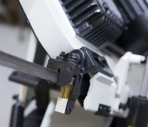 ![]() | Пильную раму возможно установить в вертикальном положении - для резки небольших изделий из дерева, пластмассы и других заготовок из мягких материалов (для которых не требуется фиксация в тисках во время пиления), при этом станок обязательно должен крепиться к полу. В стандартной комплектации имеется небольшой стол для ручной подачи заготовок, который крепится к раме в вертикальном положении. |