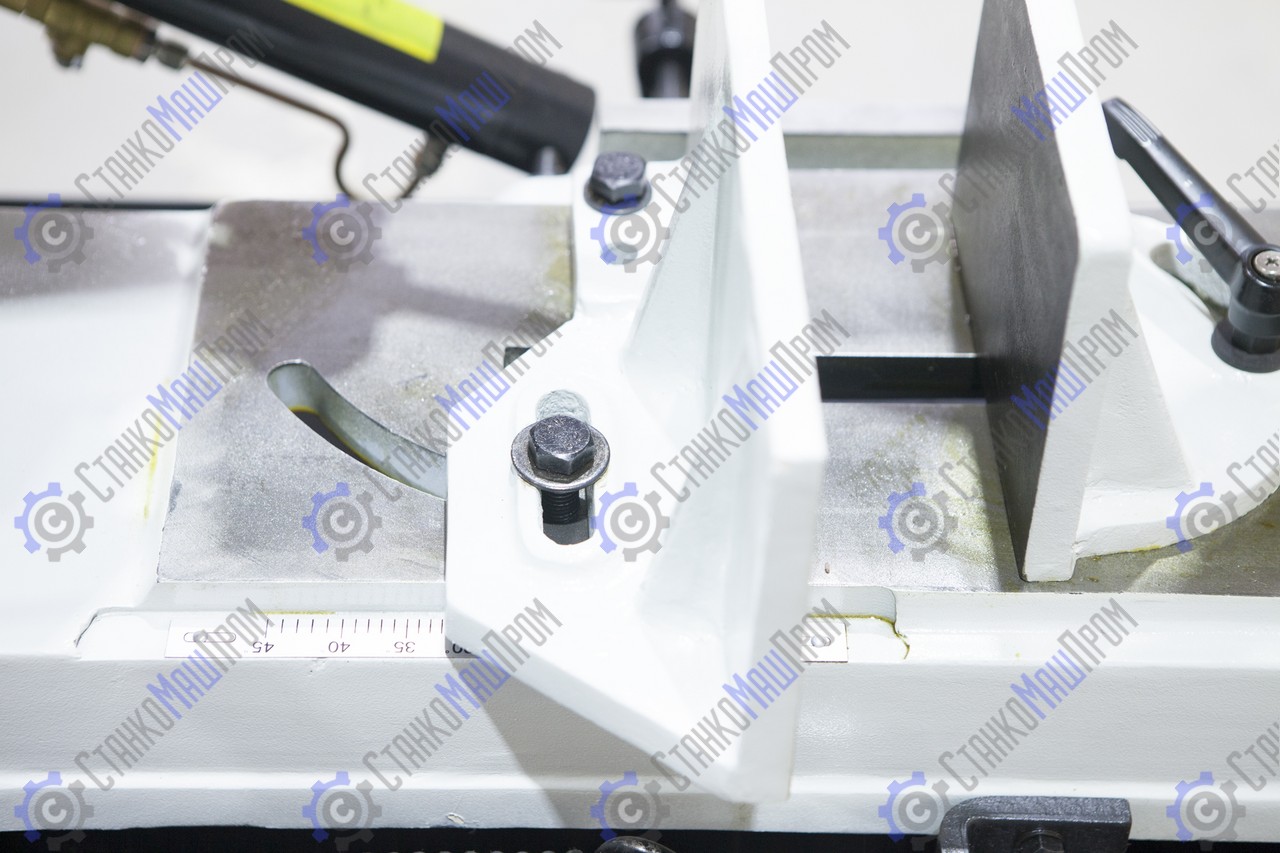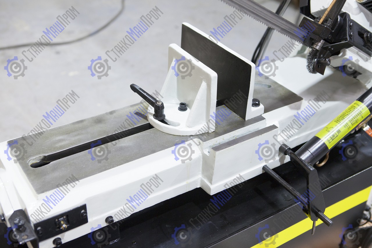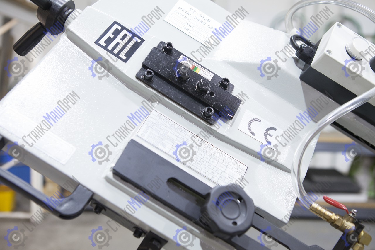 Станок Stalex BS-912B имеет поворот губок тисков, для пиления под углом необходимо изменять угол установки тисков. Зажим заготовки осуществляется тисками вручную, подача заготовки - также вручную. Мобильность станков позволяет использовать их на производстве непосредственно там, где это необходимо. Станки находят широкое применение в серийном и мелкосерийном производстве. Система СОЖ в стандартной комплектации, регулировка скорости осуществляется с помощью ступенчатого шкива (4 режима скорости).