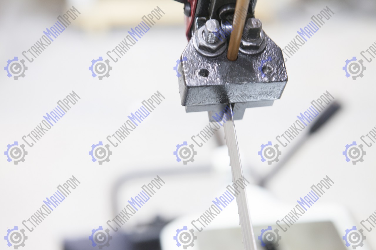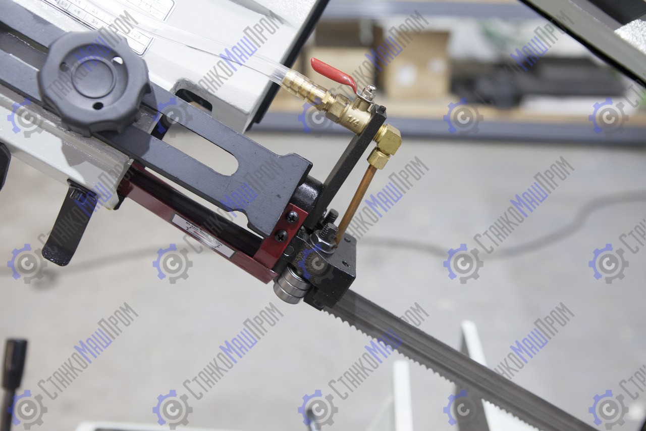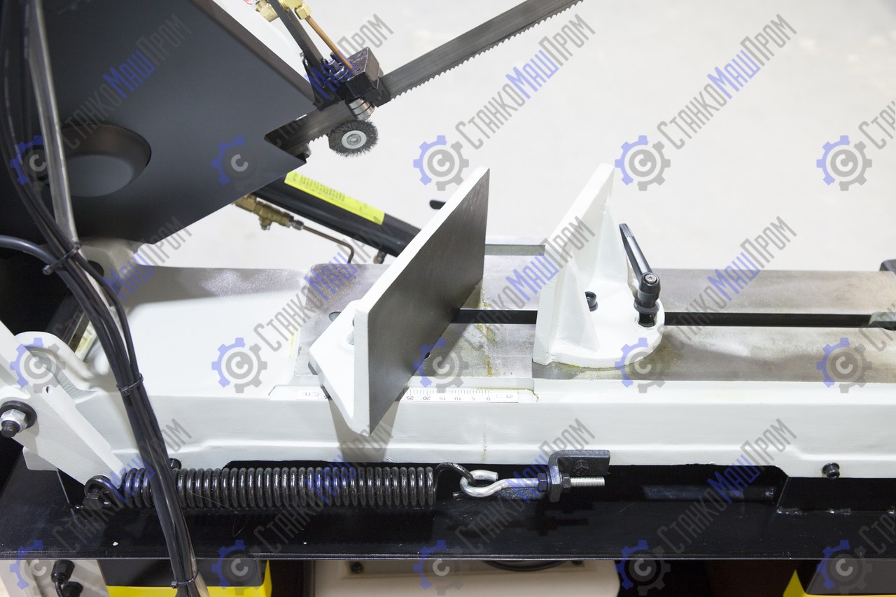 Станок Stalex BS-912B имеет поворот губок тисков, для пиления под углом необходимо изменять угол установки тисков. Зажим заготовки осуществляется тисками вручную, подача заготовки - также вручную. Мобильность станков позволяет использовать их на производстве непосредственно там, где это необходимо. Станки находят широкое применение в серийном и мелкосерийном производстве. Система СОЖ в стандартной комплектации, регулировка скорости осуществляется с помощью ступенчатого шкива (4 режима скорости).