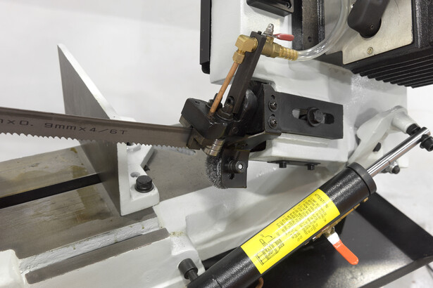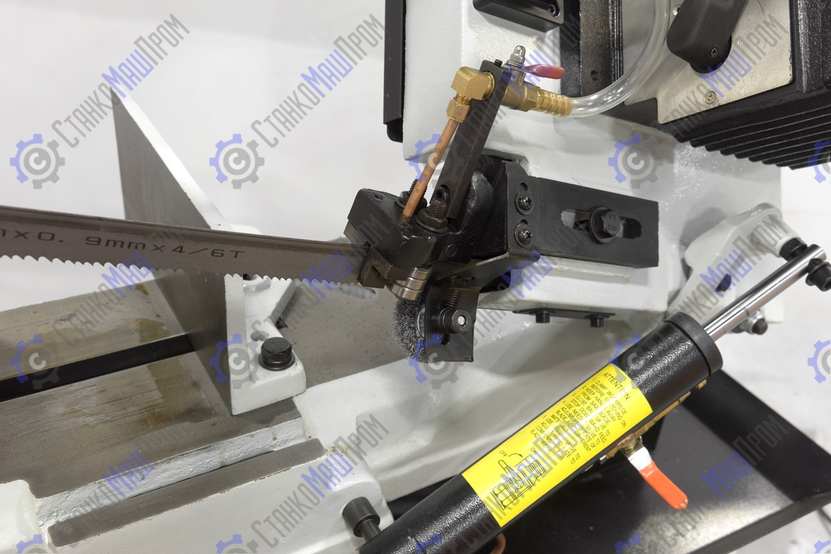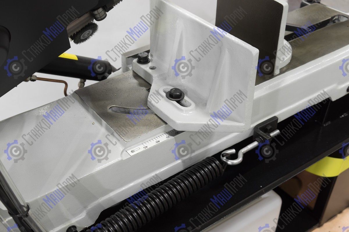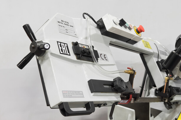 Станок Stalex BS-912G имеет поворот губок тисков, для пиления под углом необходимо изменять угол установки тисков, привод зубчатый. Зажим заготовки осуществляется тисками вручную, подача заготовки - также вручную. Мобильность станков позволяет использовать их на производстве непосредственно там, где это необходимо. Станки находят широкое применение в серийном и мелкосерийном производстве. Система СОЖ в стандартной комплектации.