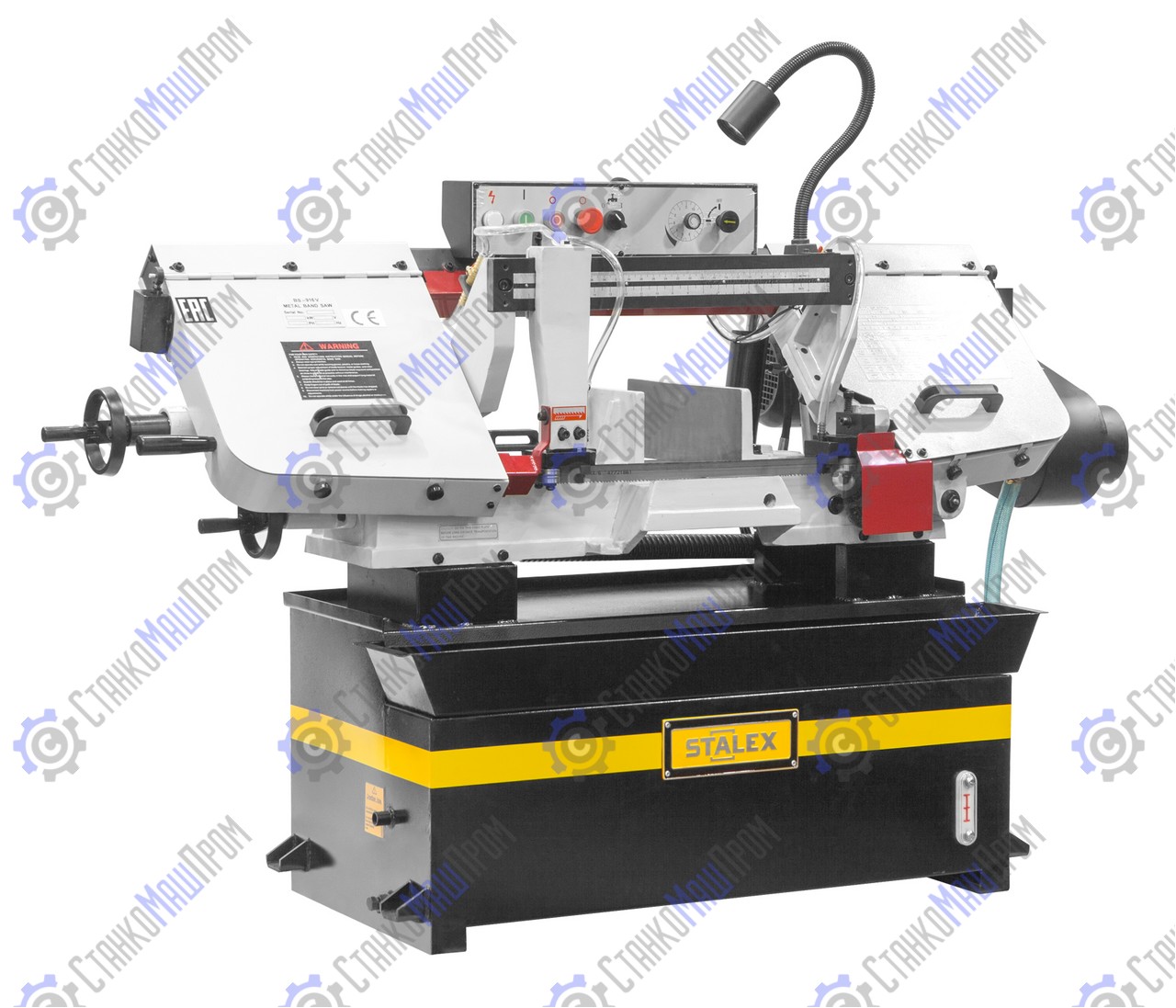 На станках Stalex с гидроразгрузкой, процесс резки (запуск пилы – опускание рамы – остановка пилы) происходит в автоматическом режиме благодаря гидравлической системе. Пила опускается под собственным весом, станок оборудован дросселируемым гидравлическим цилиндром, который позволяет автоматически подстраивать скорость опускания пильной рамы в зависимости от профиля заготовки, что обеспечивает оптимальные режимы распила, подъём рамы осуществляется оператором вручную. Станок Stalex BS-916V разработан для резки черных металлов и других материалов с целиковым, полым или профильным сечением, конструкция позволяет делать макс. распилы полых заготовок (труб) диаметром до 229мм.