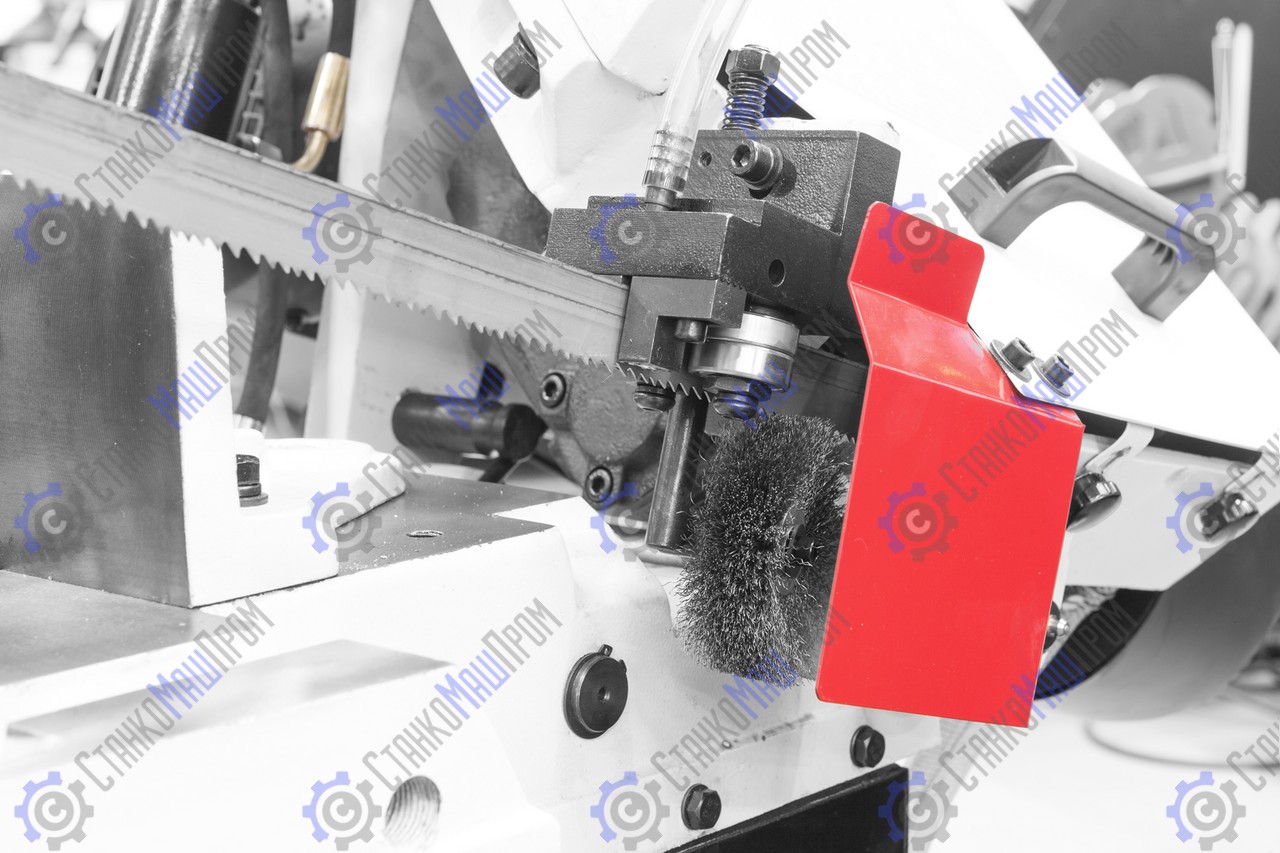 ![]() | Механическая дисковая щётка (приводимая в движение от движения полотна). Зубчатый блок, с твёрдосплавными платинами и подшипниками для выпрямления полотна в зоне резания и качественной фиксации для стабильного пиления, что в свою очередь положительно влияет на стойкость и производительность станка. |