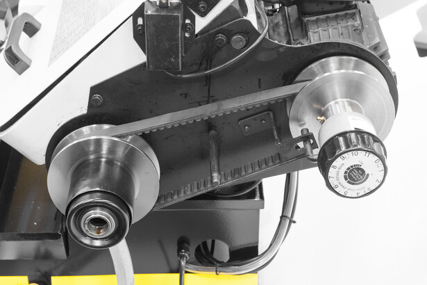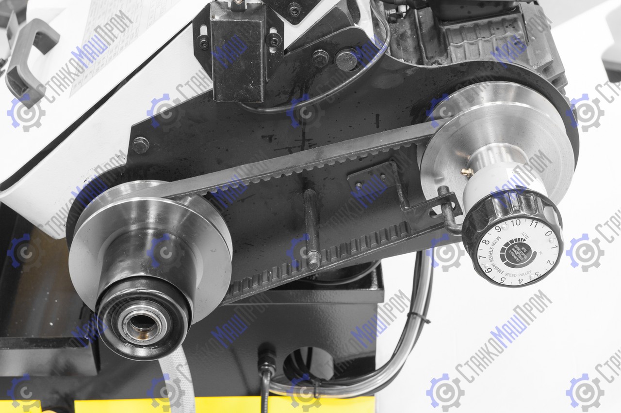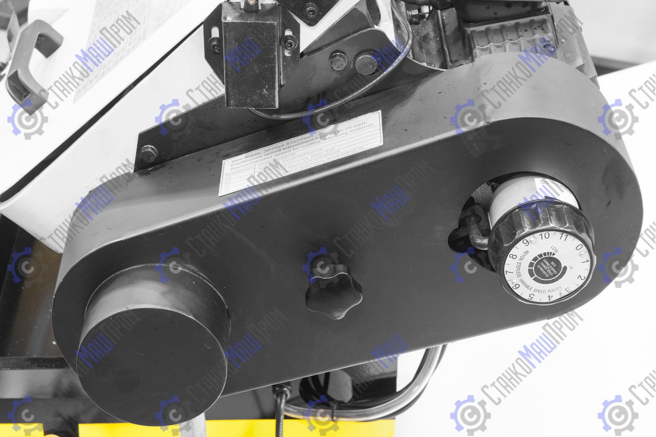 ![]() | Привод - клиноременная передача. Плавная регулировка скорость вращения пилы 18-102 м/мин (позволяющая обрабатывать большой спектр материалов – сталь/нержавеющая сталь, цветные материалы). |