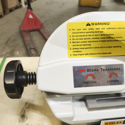![]() | Ручное натяжение полотна Маховик затягивать таким образом, чтобы тарельчатые пружины были полностью сжаты (не пропускали свет)! Тем самым будет достигнуто правильное натяжение ленточной пилы! |