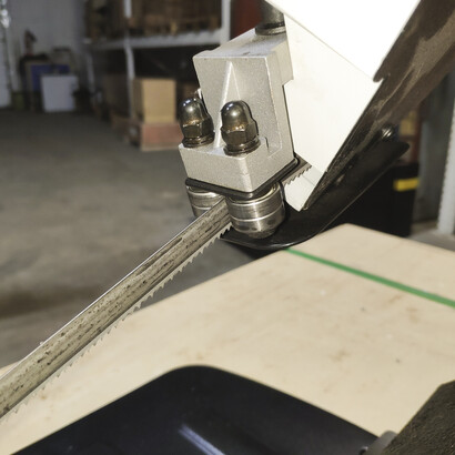 ![]() | Направляющие блоки Правильная установка подшипников оказывает существенное влияние на срок службы ленточной пилы и качество резания. Положение подшипников в направляющих головках должно быть таким образом, чтобы поверхность ленточного полотна была строго перпендикулярно основанию тисков. |