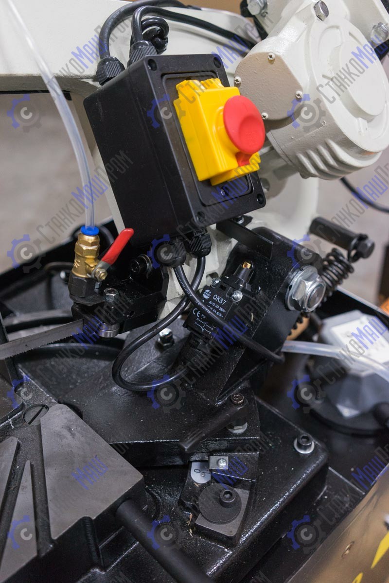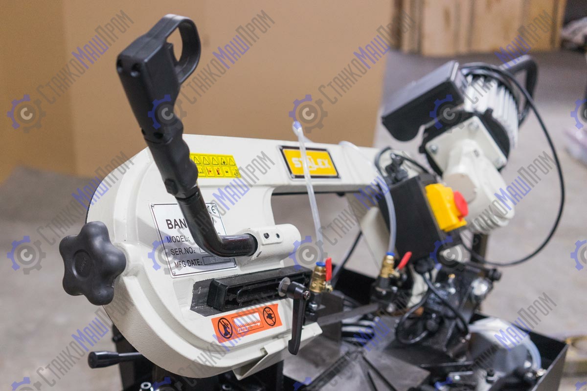 Используя данную модель, для резки под углом, поворачивается рама, а не заготовка – что позволяет работать с длинномерными заготовками быстро и удобно. Зажим заготовки осуществляется тисками вручную, подача заготовки - также вручную. Наличие системы СОЖ в стандартной комплектации – позволяет добиться эффективной производительности.
