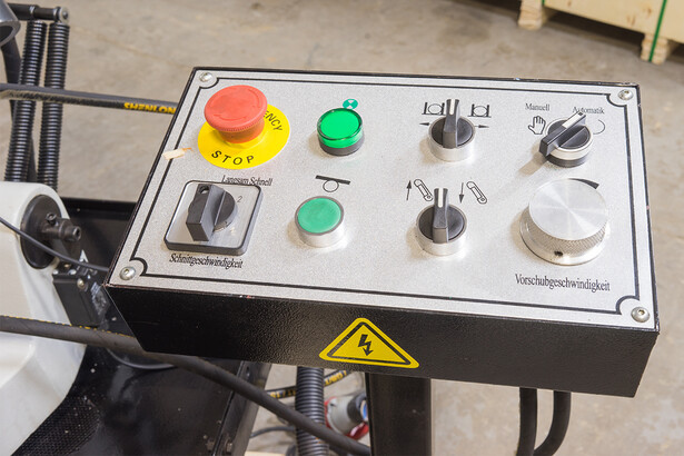 На полуавтоматических станках возможна работа как в ручном режиме, когда каждая операция выполняется вручную посредством нажатия соответствующей кнопки, так и в автоматическом режиме, когда станок выполняет весь цикл резания (зажим заготовки – запуск пилы – опускание рамы – остановка пилы – подъем рамы – отжим тисков). В последнем случае оператор должен лишь обеспечить подачу заготовок и нажатие кнопки «Пуск».