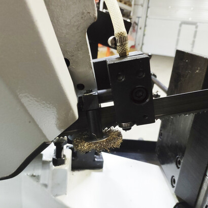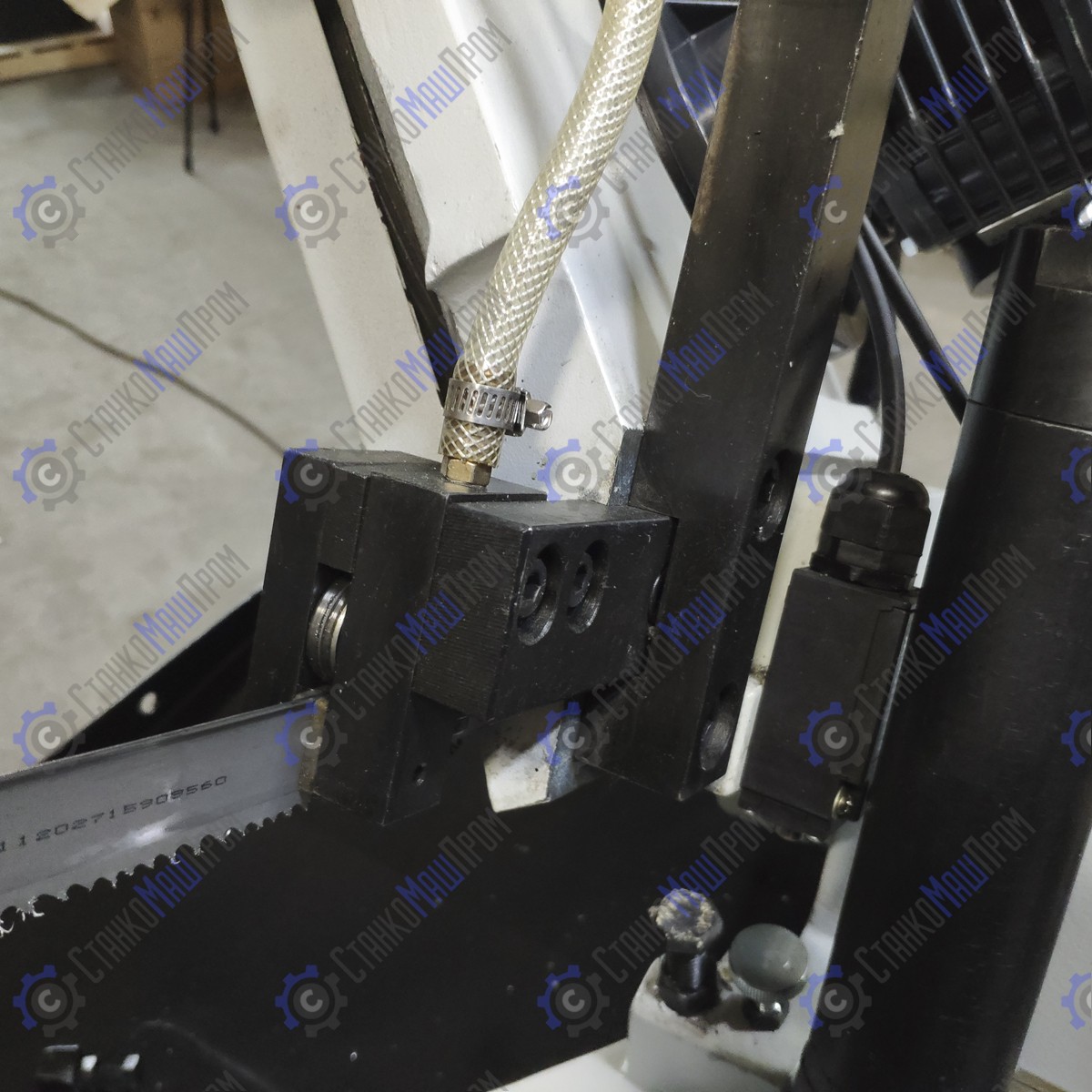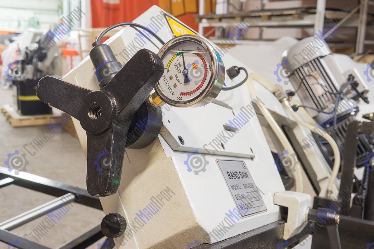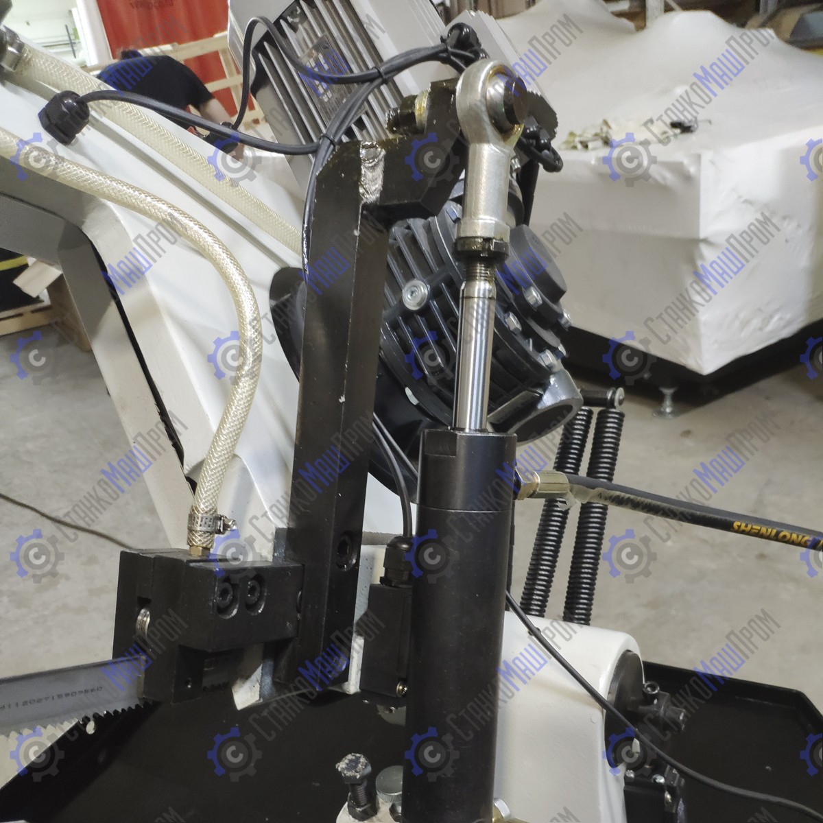 Используя данную модель, имеющую гидравлические регулируемые тиски для резки под углом, поворачивается рама, а не заготовка. Гидравлические тиски автоматизируют процесс фиксации и снятия заготовки (ускоренный отвод подвижной губки происходит без вращения маховика). Наличие система СОЖ в стандартной комплектации – позволяет добиться высокой производительности.