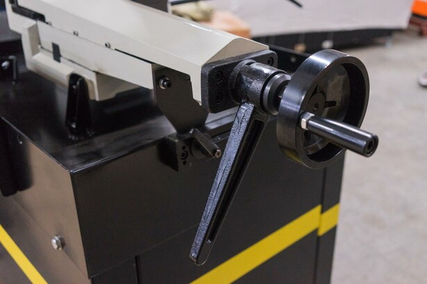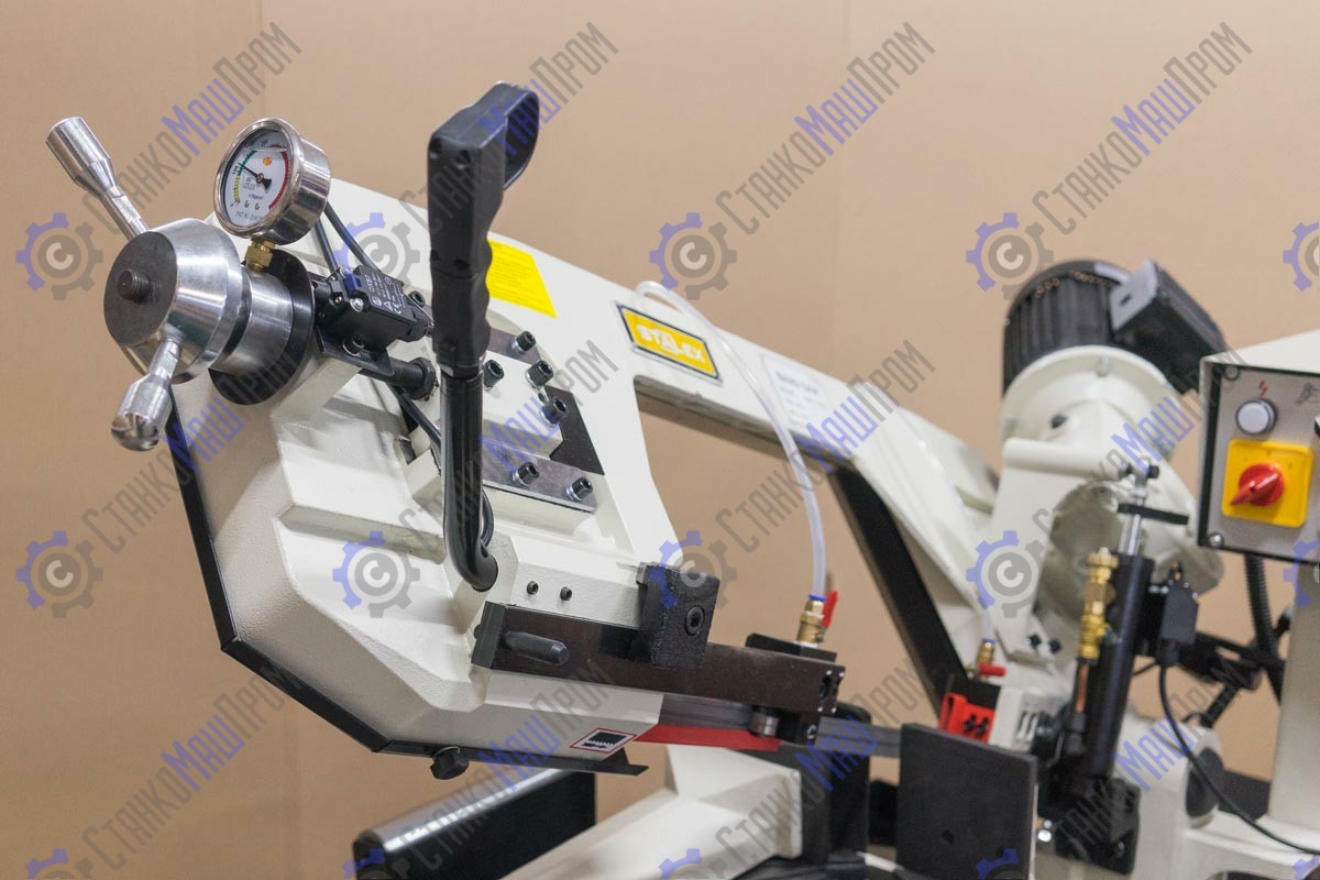 Используя данную модель имеющую быстро регулируемые тиски для резки под углом, поворачивается рама, а не заготовка. Тиски с системой быстрого отвода ускоряют процесс смены заготовки (ускоренный отвод подвижной губки происходит без вращения маховика). Зажим заготовки осуществляется тисками вручную, подача заготовки - также вручную. Наличие система СОЖ в стандартной комплектации – позволяет добиться высокой производительности.