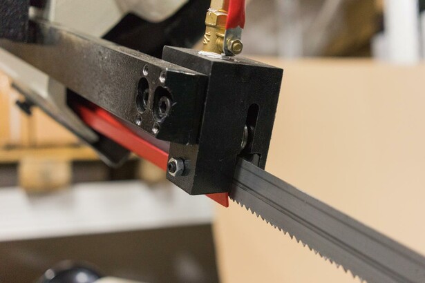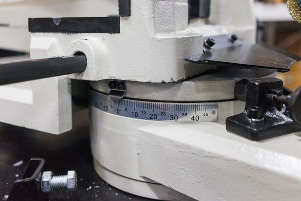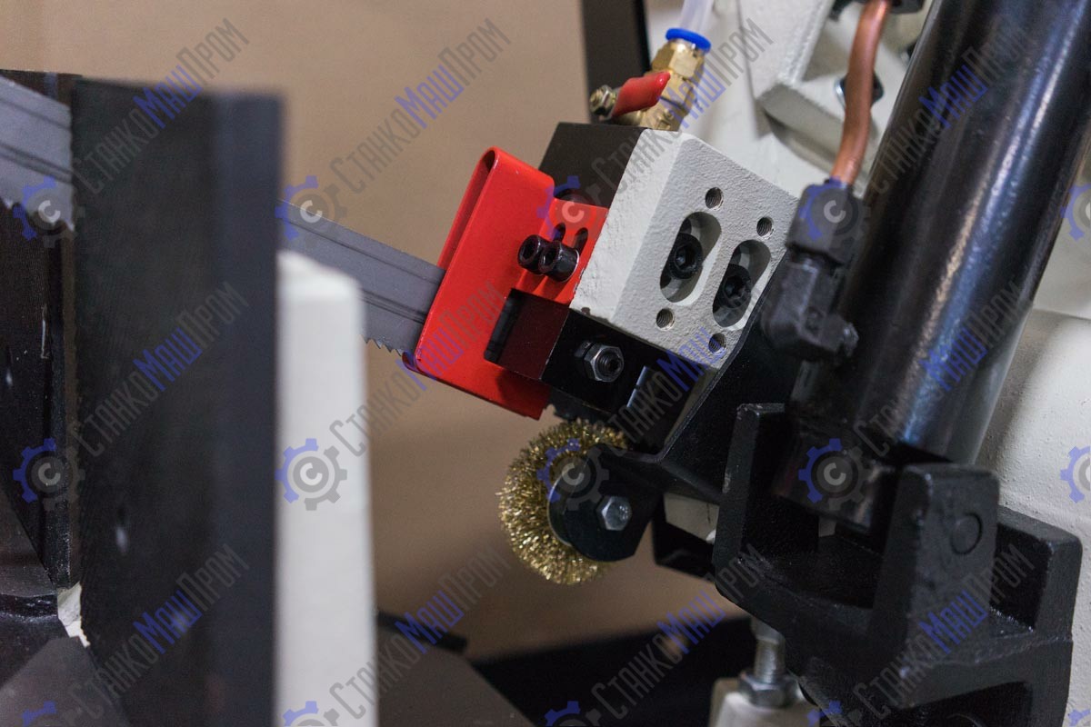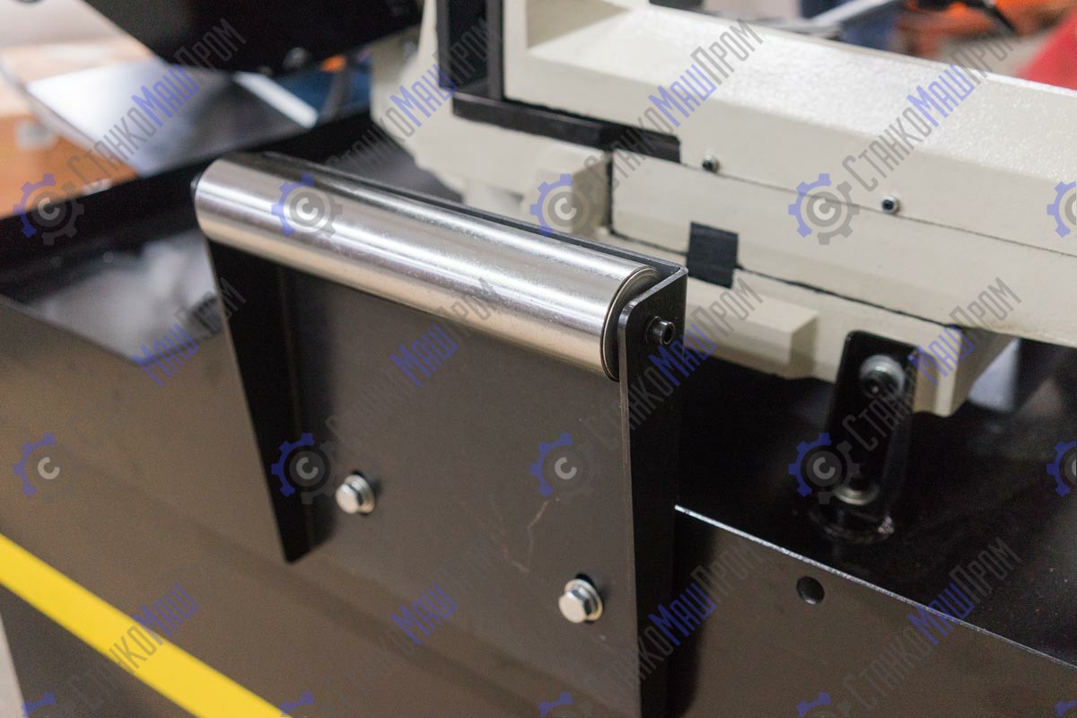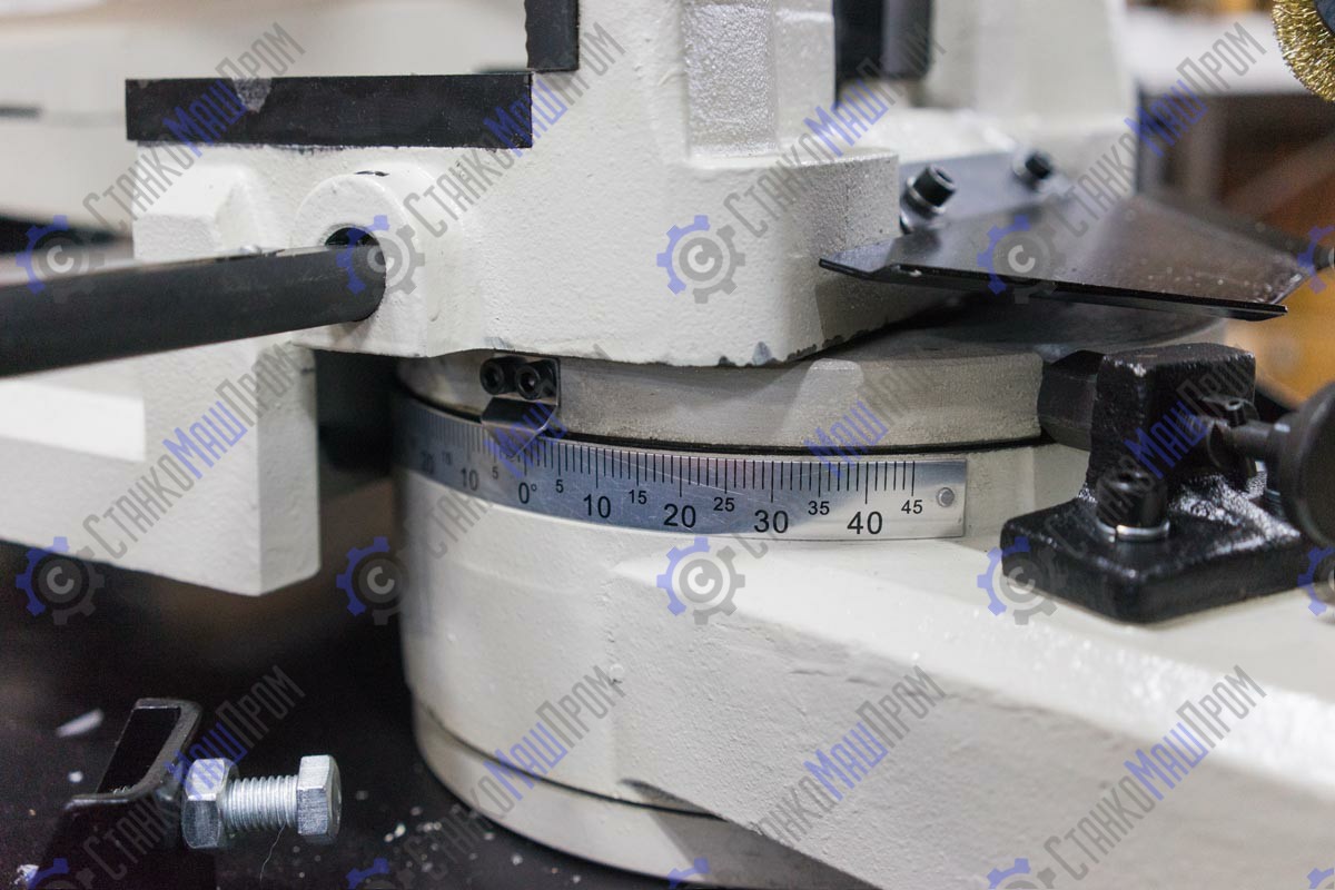 В рабочей зоне резания полотно точно ведется двумя направляющими головками. Станок с возможностью поворота корпуса пилы от -45° 0° до +60°, предназначен для пиления заготовок, под различными углами и при частой смене угла пила.