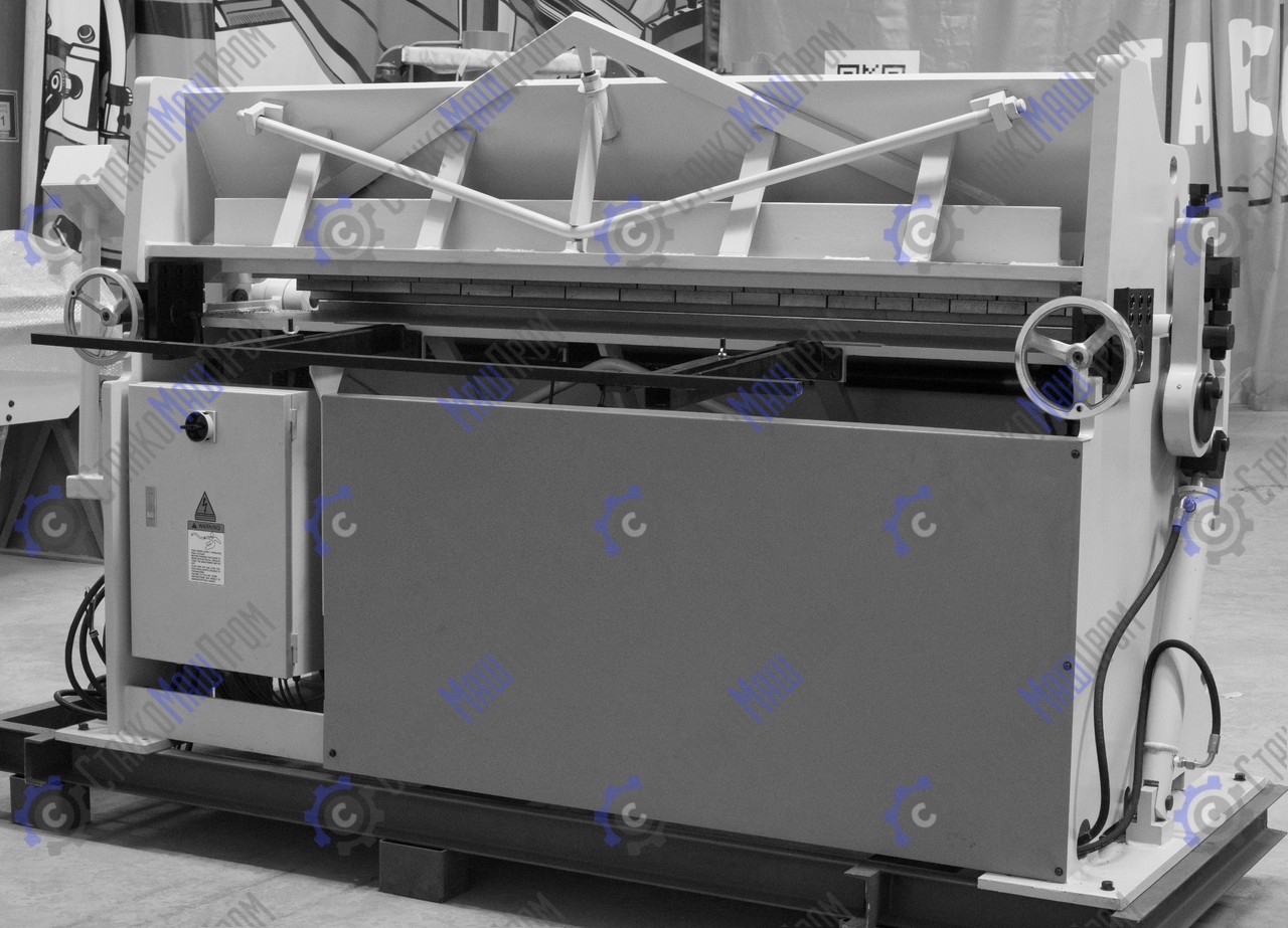 Мощные листогибы имеют гидравлический привод, что позволяет им выполнять гиб с толщиной листа до 3,5 мм. Станки оснащены механической системой регулировки угла гиба в диапазоне от 0° до 135°, что позволяет осуществлять гиб с высокой точностью и повторяемостью. В конструкции станка предусмотрены регулировка радиуса гиба и рычаг регулировки высоты подъема прижимной балки.