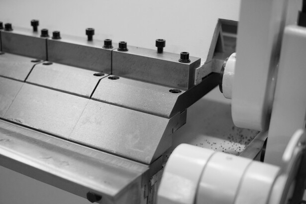 Верхняя прижимная балка является сегментной, сегменты произведены из специальной закаленной стали - данная особенность станка позволяет работать с широкими и сложными профилями, таких как: короба, поддоны и аналогичные конструкции.