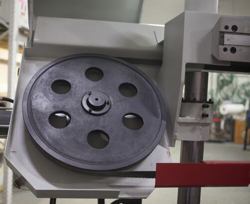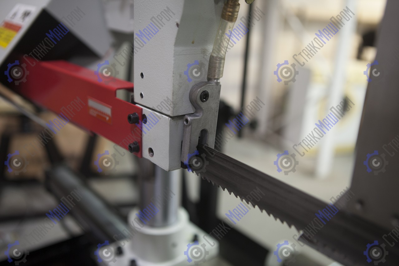 Полуавтоматический ленточнопильный станок, предназначен для пиления труб и сплошных заготовок, максимальным диаметром круга 350 мм и прямоугольной заготовки 350x350 мм под углом 90°. Двухстоечные ленточнопильные станки имеют 2 вертикальные стойки (колонны) большого диаметра по которой вертикально перемещается горизонтальная пильная рама. Пильная рама, представляет собой стальную сварную конструкцию.
