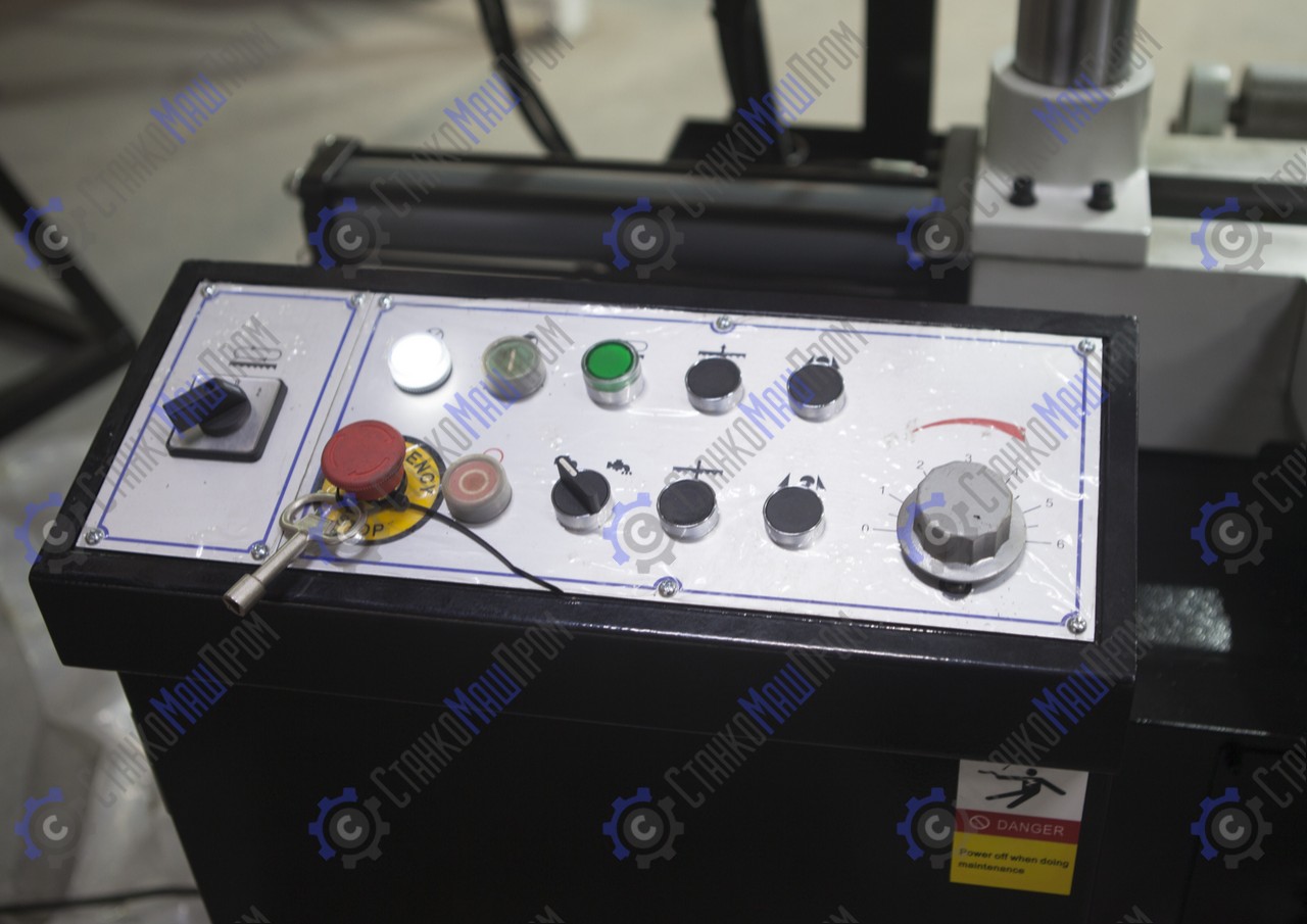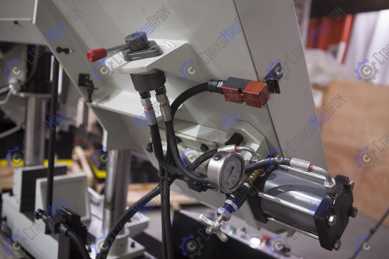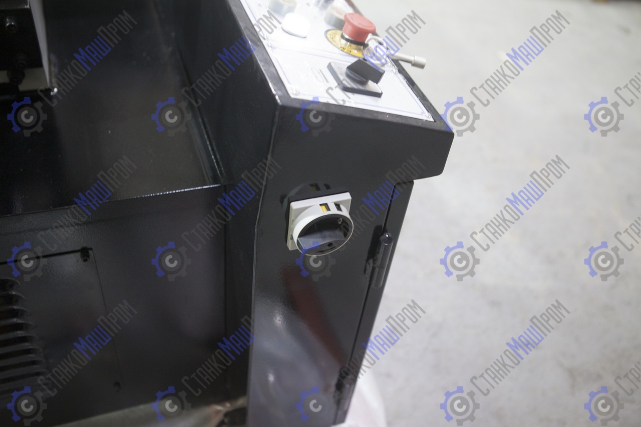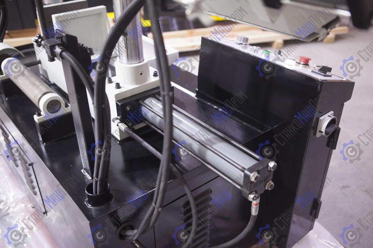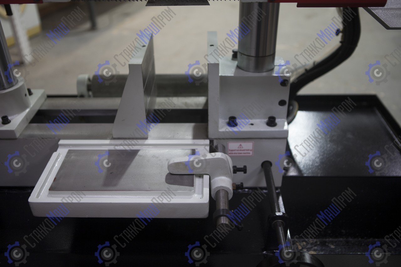 На полуавтоматических станках возможна работа как в ручном режиме, когда каждая операция выполняется вручную посредством нажатия соответствующей кнопки, так и в автоматическом режиме, когда станок выполняет весь цикл резания (зажим заготовки – запуск пилы – опускание рамы – остановка пилы – подъем рамы – отжим тисков). В последнем случае оператор должен лишь обеспечить подачу заготовок и нажатие кнопки «Пуск».
