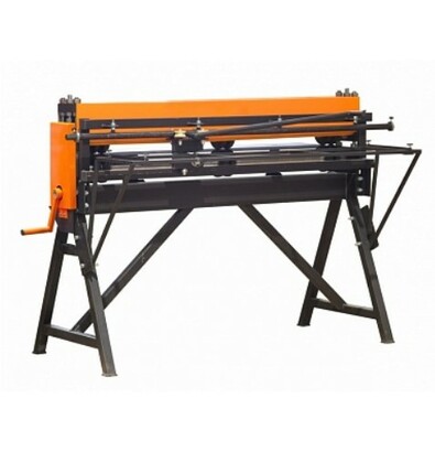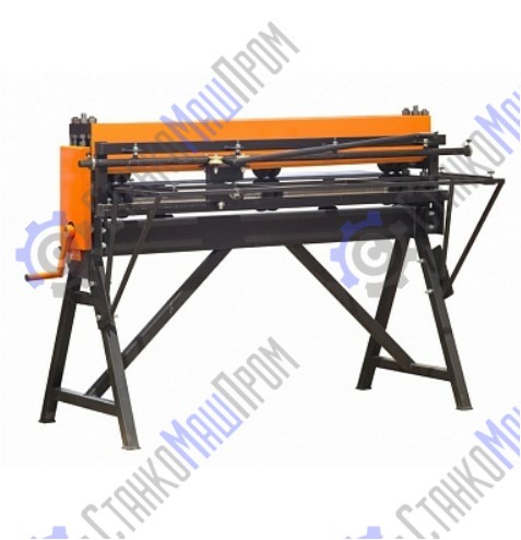 Станок поперечной резки металла. Протягивает листы рулонного металла через прорезиненные ролики. Механический отрезной нож. Макс. толщина протягивания и резки – 0,8мм (сталь) включительно.
