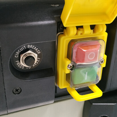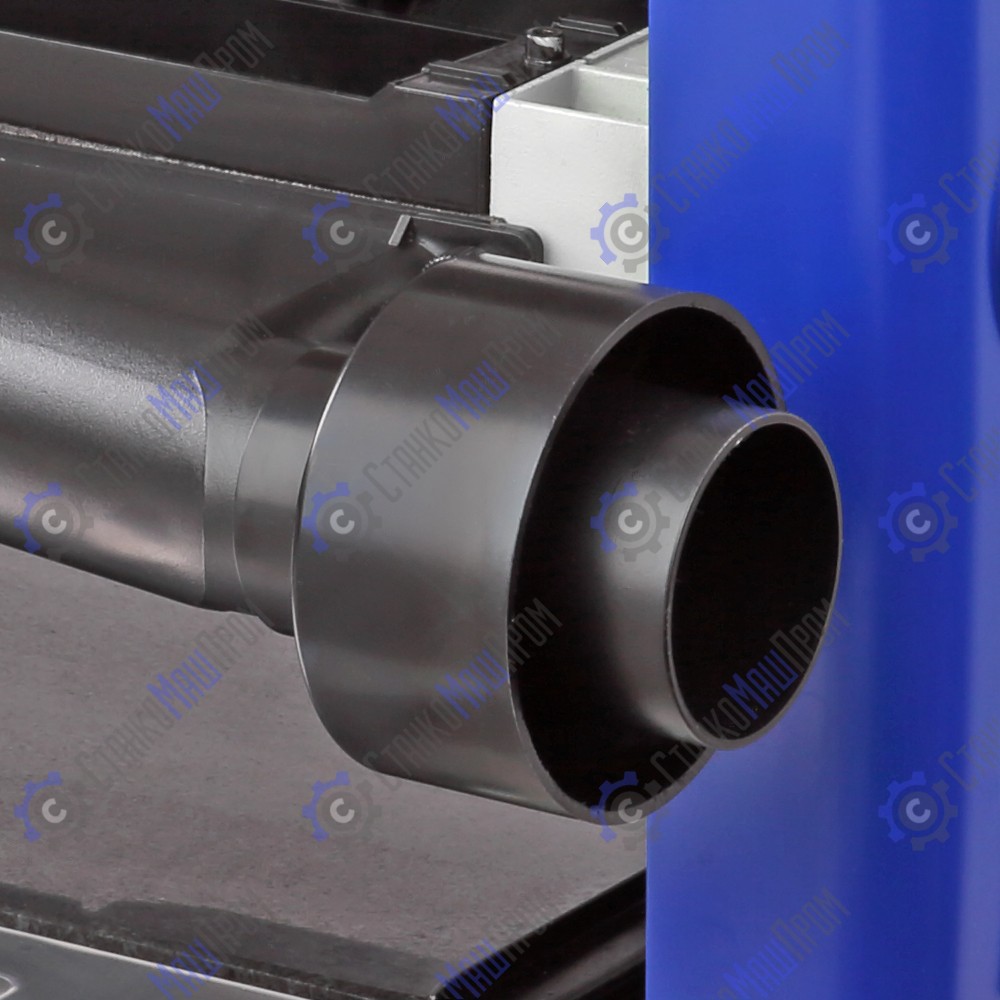 Для отвода отходов резания предусмотрен кожух, который имеет патрубок отвода стружки 53 мм. Его направление при установке может быть как в правую, так и в левую сторону. На патрубок надевается универсальный адаптер с диаметрами под подключение пылесоса на 63 и 102 мм.
