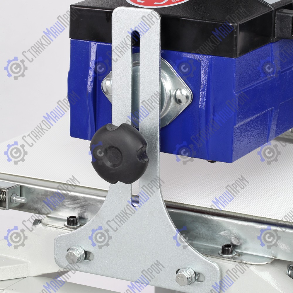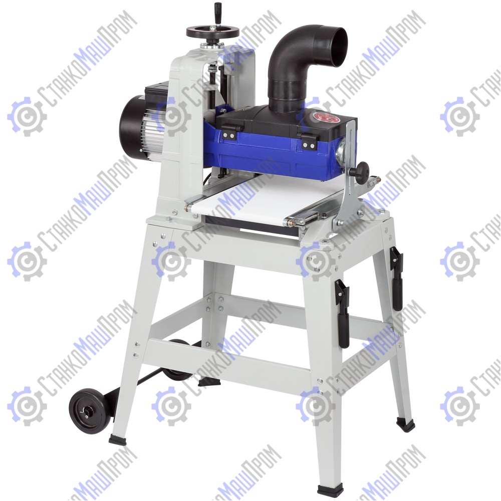 Станина выполнена из чугуна. Подставка – сборная стальная. Она снабжена складными ручками и парой колёс для удобного перемещения станка по мастерской. Кнопка выключателя в пылезащищенном исполнении.
