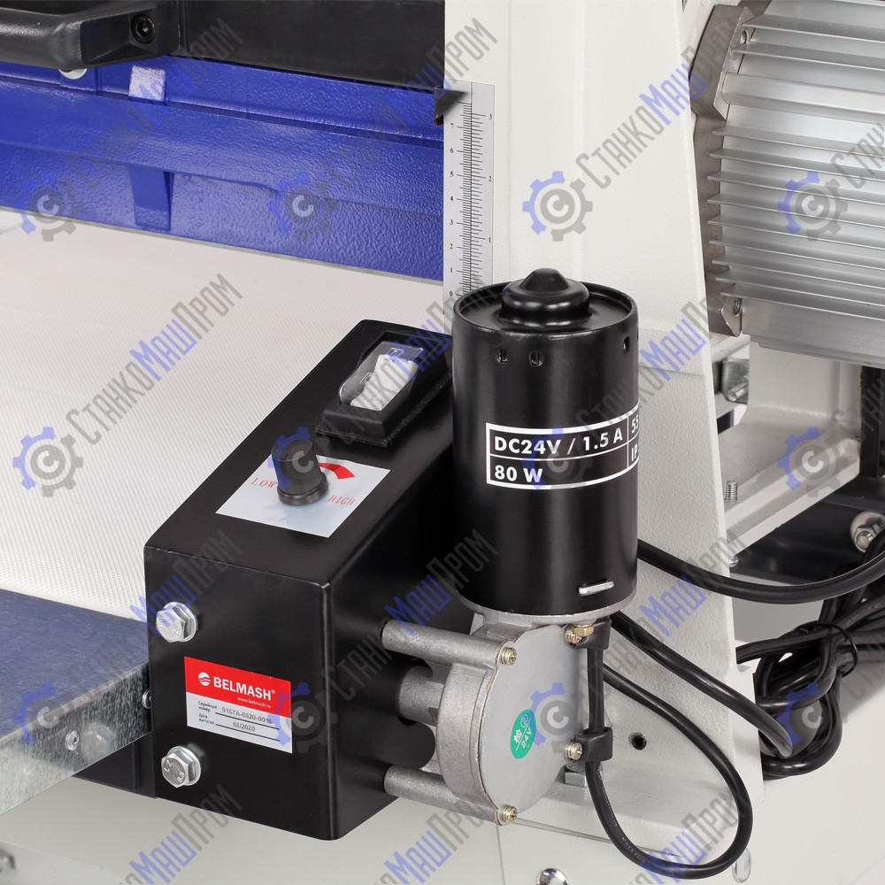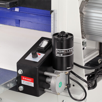 В станке реализована функция автоподачи. Заготовка протягивается транспортной лентой из специального нескользящего материала. В движение ленту приводит дополнительный коллекторный электродвигатель мощностью 80 Вт. Скорость подачи регулируется от 0 до 3,5 м/мин.