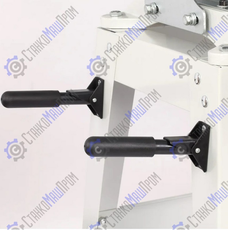Станина выполнена из чугуна. Подставка – сборная стальная. Она снабжена складными ручками и парой колёс для удобного перемещения станка по мастерской.