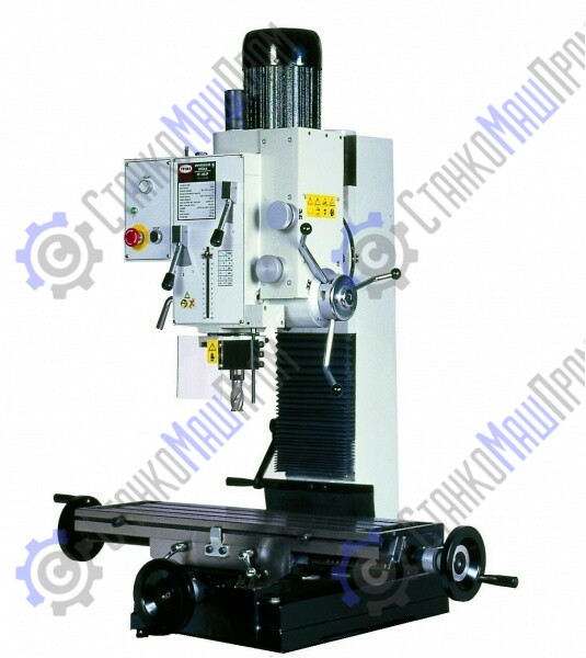 Станки сверлильно-фрезерные FP-45P, FP-48SP, FP-48SPN - настольные станки для выполнения фрезерных операций концевыми фрезами, торцевыми насадными, операций сверления, нарезания резьбы. Данные станки - это одни из самых массивных станков в своем классе. Массивнее, пожалуй, только напольные. Все узлы станка смонтированы на массивном литом, достаточно габаритном основании, которая прекрасно обеспечивает устойчивость станка, и играет немаловажную роль в гашении вибраций при обработке. На подошве установлен крестообразный стол. Продольная и поперечная подача стола производится вручную, а на станке мод. FP-48SPN уже в базовой комплектации установлено устройство продольной автоподачи по оси Х.