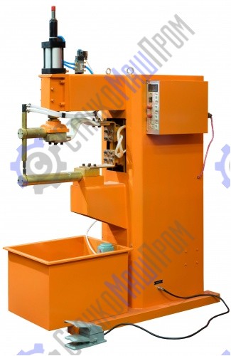 Время подачи тока при сварке и время приложения усилий сжатия, сила тока и величина усилий сжатия определяются по заданной циклограмме процесса, что позволяет делать точечное соединение деталей без перегрева шва. Станок оснащен водяной системой охлаждения, что позволяет использовать станок для сварки толстолистовых деталей, тонколистовых деталей и деталей сложных форм.