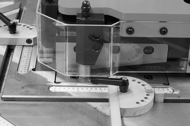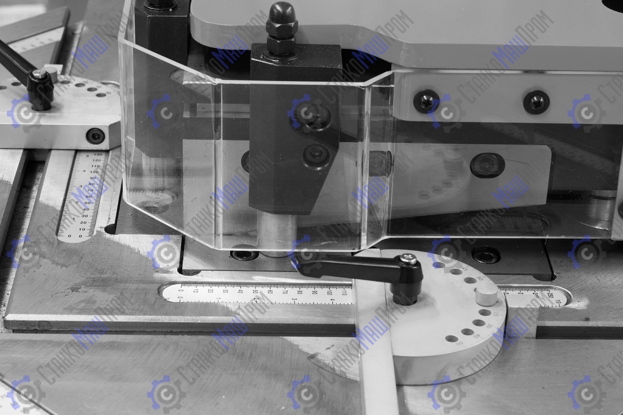 ![]() | Прижимы листа и упоры фиксации, позволяющие определять положение заготовки под различными углами. |
