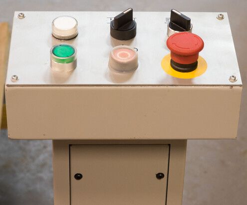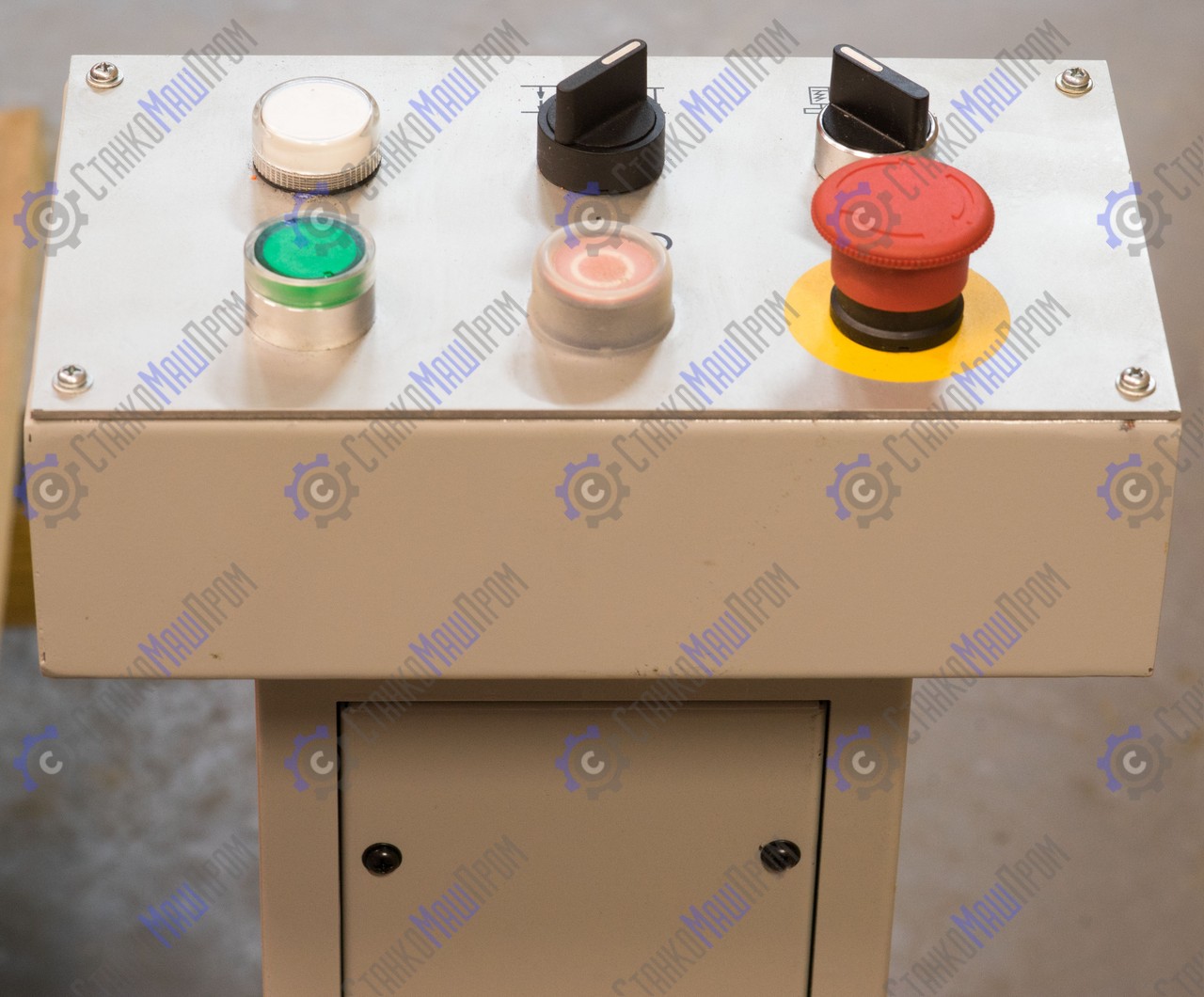 ![]() | Защитный кожух, маховики для поворота каждой губки на общий угол заготовки с 30°до140°, мерная линейка на рабочем столе |