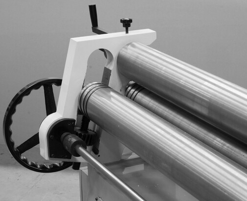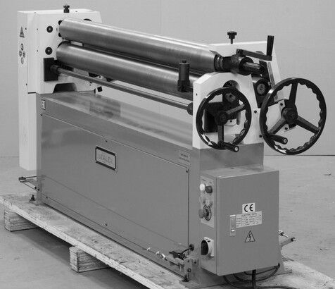 Вальцовочный станок предназначен для предания листу цилиндрической формы различного радиуса, данное оборудование широко применяется для изготовления комплектующих вентиляции, водосточного оборудования, в случаях производства цилиндрических и конических изделий, правке плоских заготовок, подгибке кромок. Выносная педаль дублируется пультом управления на станине станка. Цепная передача передаёт вращение с электродвигателя на валы. Верхний вал откидной, для легкого снятия готовых изделий. Откидной вал оснащен замком для предотвращения его самопроизвольного раскрытия в процессе работы.