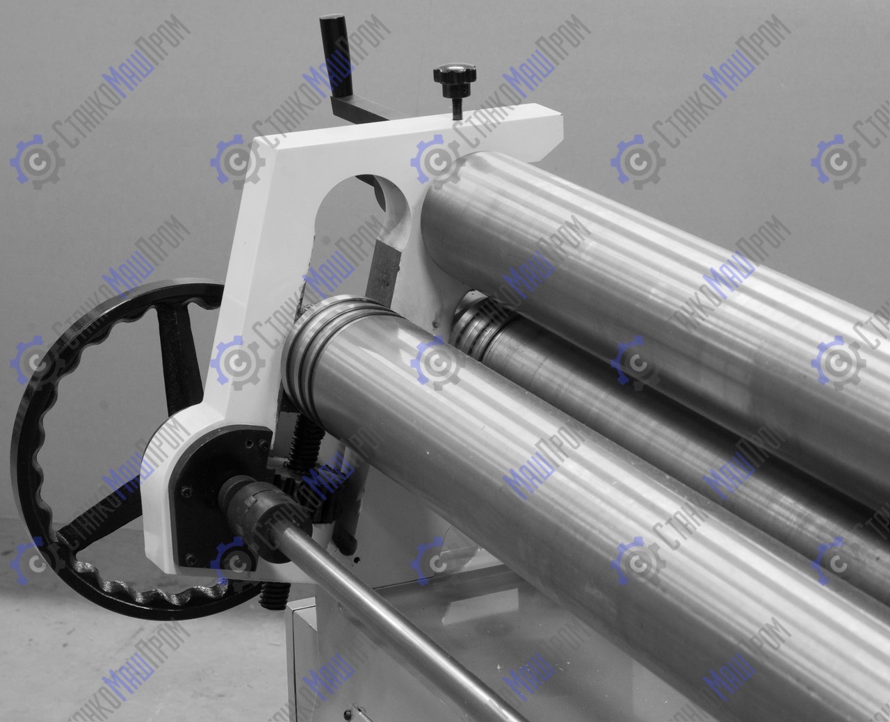 Вальцовочный станок предназначен для предания листу цилиндрической формы различного радиуса, данное оборудование широко применяется для изготовления комплектующих вентиляции, водосточного оборудования, в случаях производства цилиндрических и конических изделий, правке плоских заготовок, подгибке кромок. Выносная педаль дублируется пультом управления на станине станка. Цепная передача передаёт вращение с электродвигателя на валы. Верхний вал откидной, для легкого снятия готовых изделий.