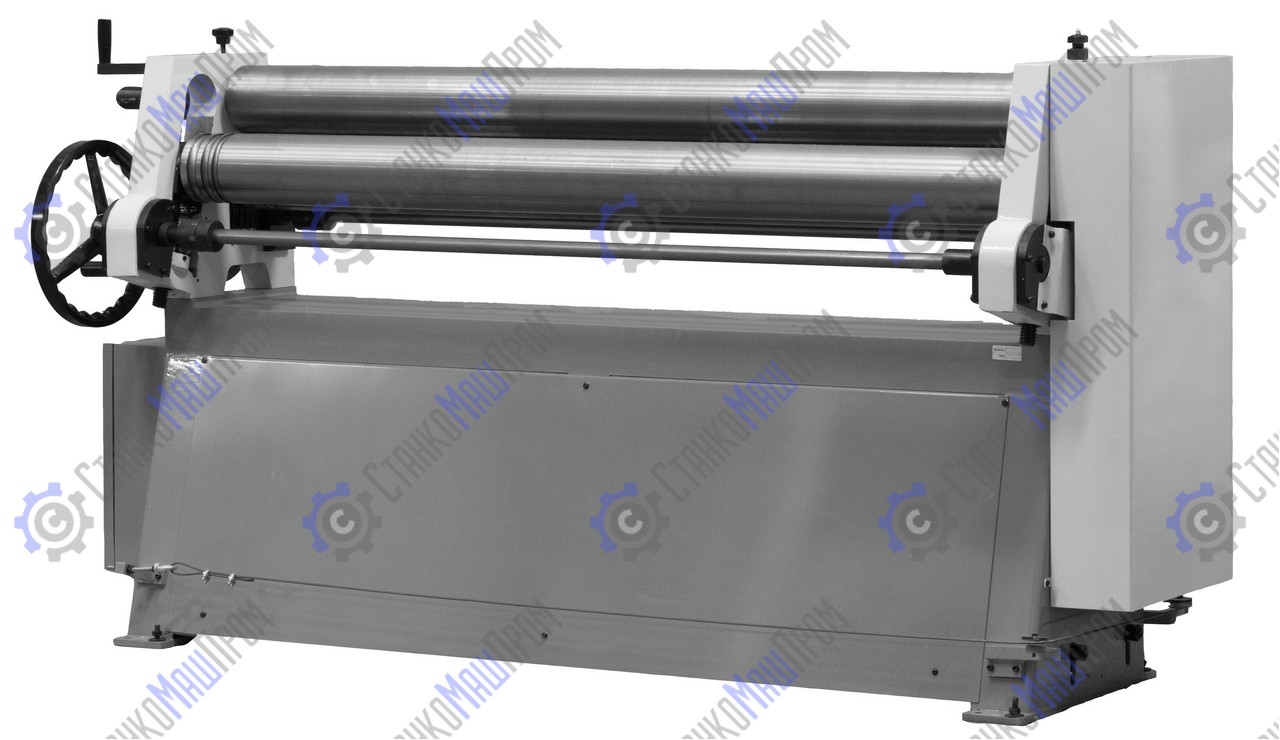 Вальцовочный станок предназначен для предания листу цилиндрической формы различного радиуса, данное оборудование широко применяется для изготовления комплектующих вентиляции, водосточного оборудования, в случаях производства цилиндрических и конических изделий, правке плоских заготовок, подгибке кромок. Выносная педаль дублируется пультом управления на станине станка. Цепная передача передаёт вращение с электродвигателя на валы. Верхний вал откидной, для легкого снятия готовых изделий. Откидной вал оснащен замком для предотвращения его самопроизвольного раскрытия в процессе работы.