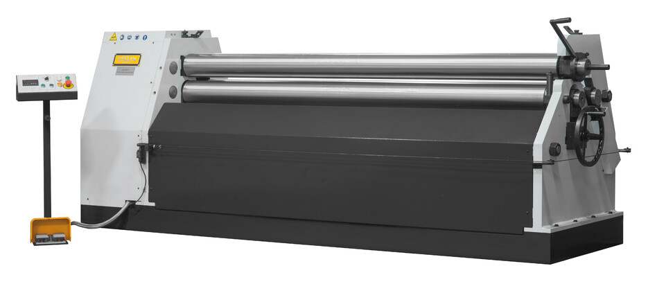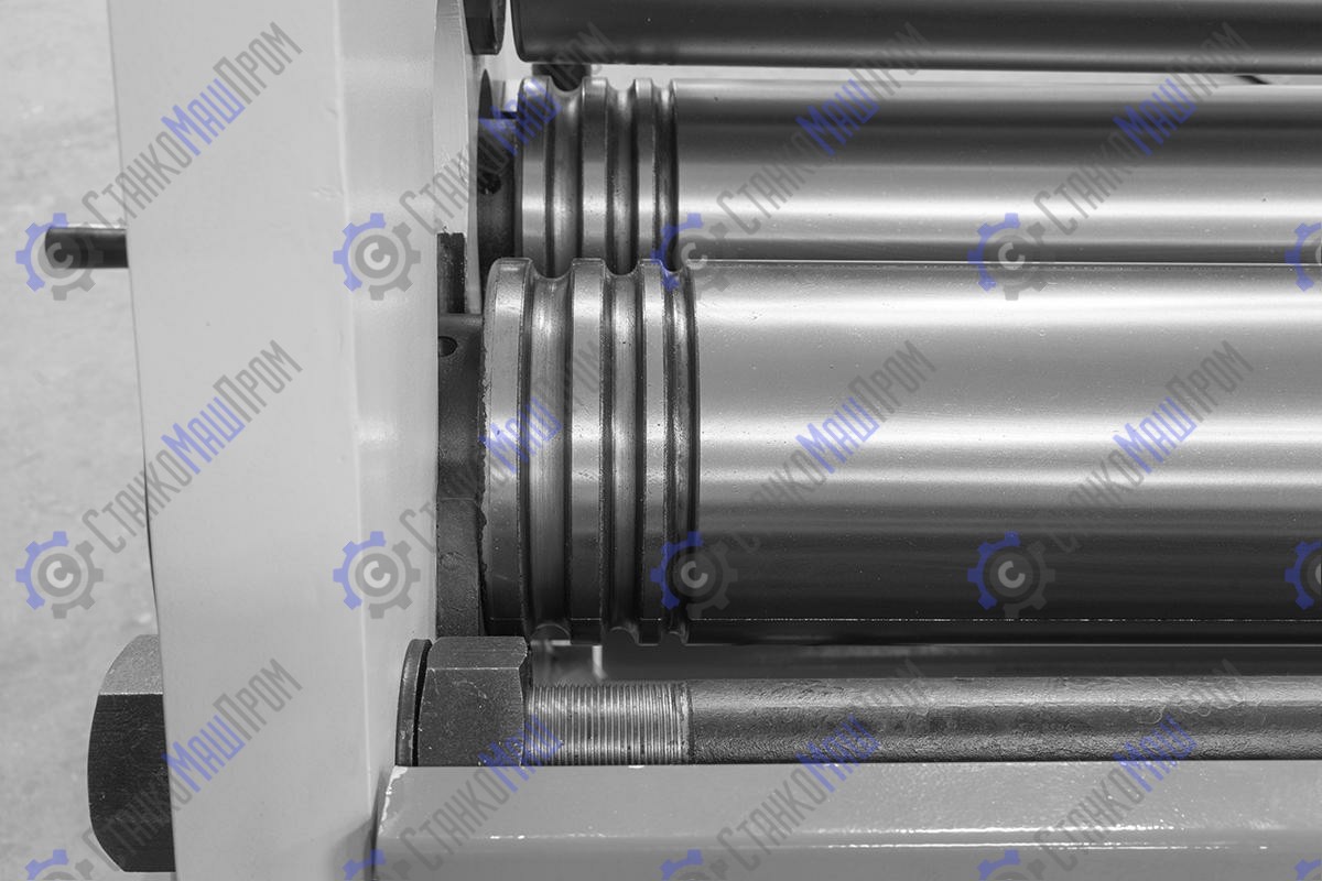 Вальцовочный станок предназначен для предания листу цилиндрической формы различного радиуса, данное оборудование широко применяется для изготовления комплектующих вентиляции, водосточного оборудования, в случаях производства цилиндрических и конических изделий, правке плоских заготовок, подгибке кромок. Выносная педаль дублируется пультом управления на станине станка. Цепная передача передаёт вращение с электродвигателя на валы. Верхний вал откидной, для легкого снятия готовых изделий. Откидной вал оснащен замком для предотвращения его самопроизвольного раскрытия в процессе работы.