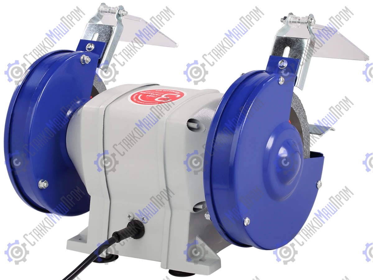Компактная и легкая модель с традиционной компоновкой. По центру расположен асинхронный двигатель мощностью 300 Вт. По обе стороны от двигателя установлены заточные диски диаметром 150 мм и шириной 16 мм с различной зернистостью. Диски изготовлены из нормального электрокорунда (15А). Такой абразив используют для снятия заусенцев, фасок, обдирки на небольших заготовках, восстановления эксплуатационных свойств ручного инструмента, такого как ножи, топоры, секаторы и т. п.