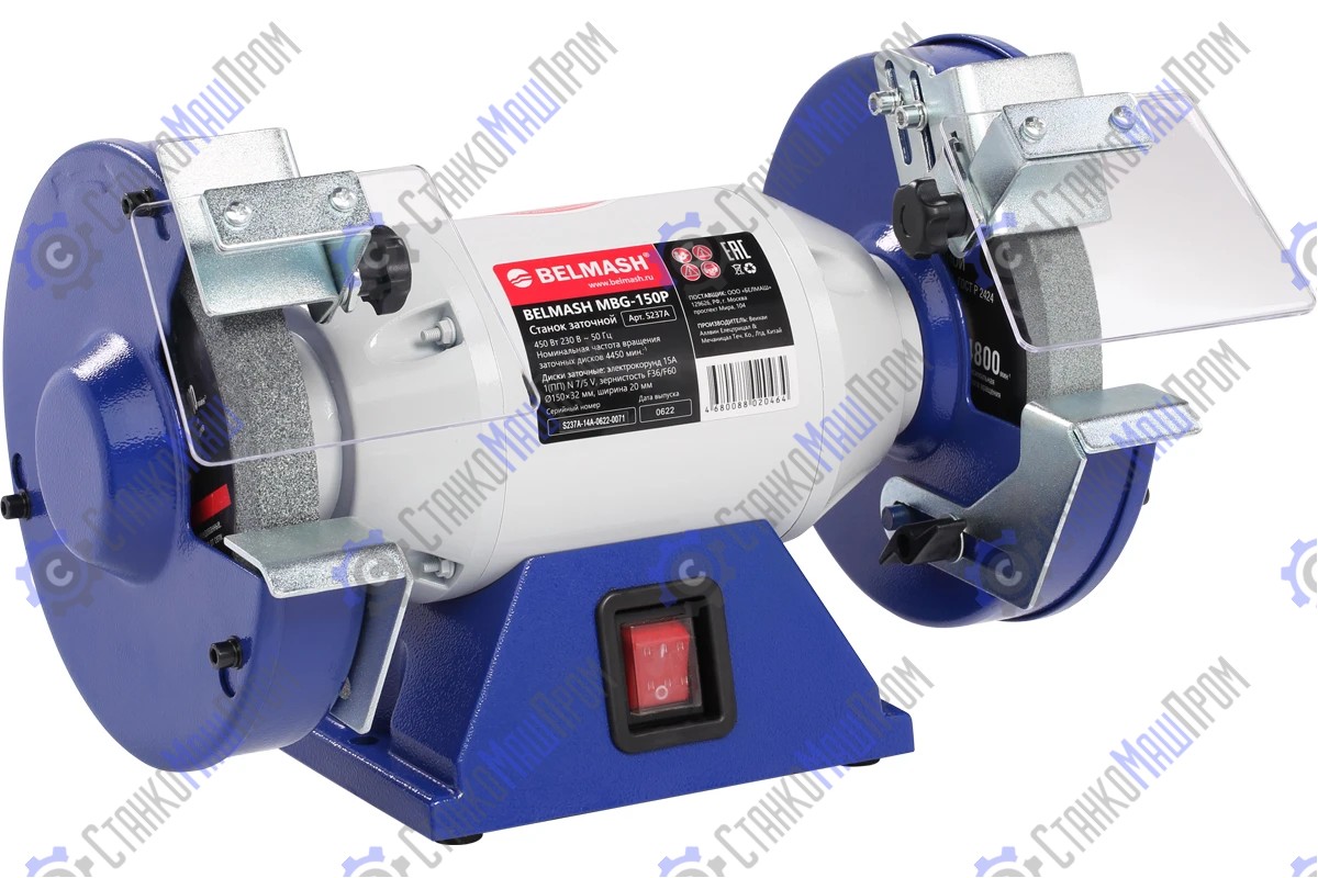 Станок BELMASH MBG-150P предназначен для затачивания режущих инструментов при помощи вертикально вращающихся заточных дисков.