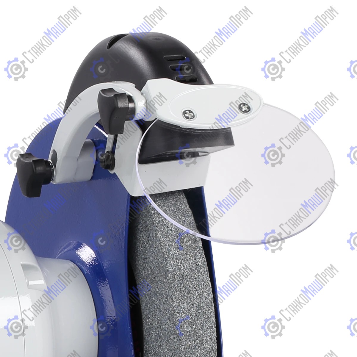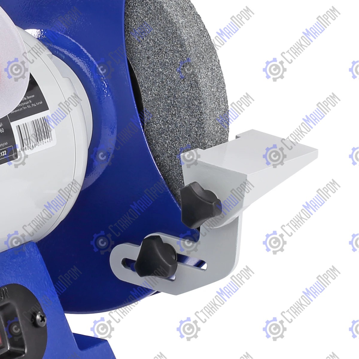 Заточной диск на холостом ходу развивает скорость 2850 об/мин, что способствует высокой производительности модели. Чугунное основание станка снижает вибрацию. Имеются два отверстия для крепления к верстаку.