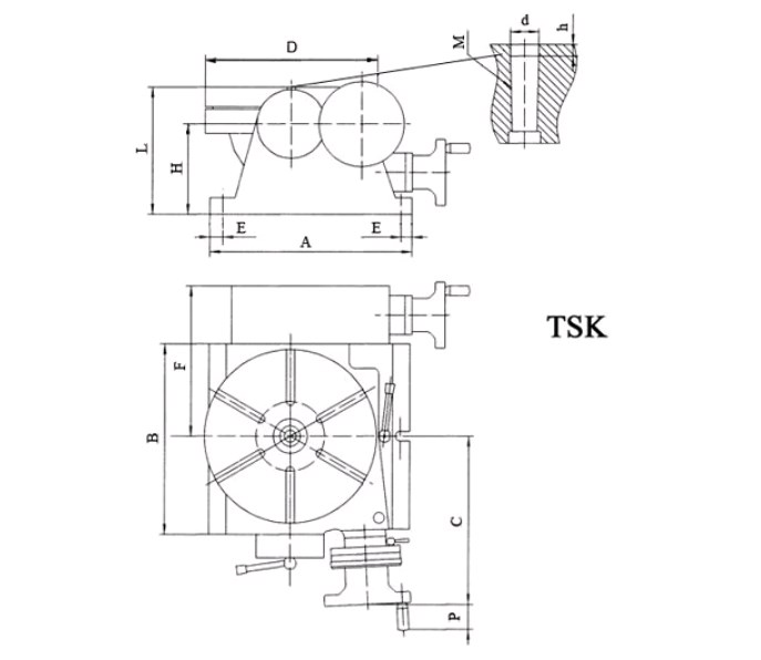 Стол поворотный наклоняемый серии TSK предназначены для деления, кругового резания, установки углов, расточки, локальной обработки и подобной работы совместно с фрезерными станками. Этот тип стола специально предназначен для выполнения машинных операций с большими возможностями измерения, чем столы серии TS или TSL. Основание позволяет использовать столы и в вертикальном положении для проведения работ с использованием задней бабки.