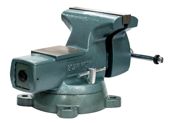 Закрытый ходовой винт тисков защищен высококачественной стальной пластиной от попадания металлической стружки и опилок. Тиски имеют возможность поворота на 360° относительно своего основания. Линейка тисков «Гиппо» выделяется большим раскрытием тисков и высоким качеством. Винт ручки и ручка – хромированные с резиновыми ограничителями. Зев тисков предназначен для крепления трубы в тисках.