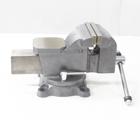 ![]() | 1. Ручка ходового винта 2. Винт ходовой 3. Подвижной блок 4. Губка тисков подвижная 5. Губка тисков неподвижная 6. Наковальня 7. Поворотный блок 8. Винт фиксации 9. Основание 10. Отверстие для крепления 11. Ручка винта фиксации |