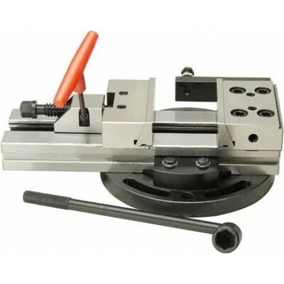 Тиски изготовлены из высококачественной легированной стали. Твердость рабочих поверхностей достигает 58 HRC - 62 HRC. Точность тисков: параллельность ≤ 0,005 мм / 100 мм, перпендикулярность ≤ 0,005 мм. Тиски имеют взаимозаменяемое основание. Подвижная и неподвижная губки обеспечивают быстрый зажим и простоту в работе. Тиски имеют поворотный стол.