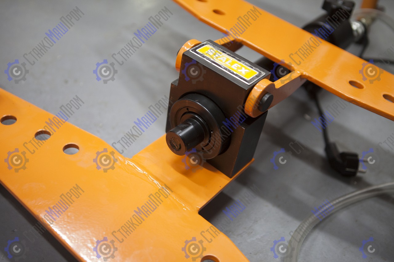 При такой конструкции станка, усилие работника сводятся к минимуму – он производит лишь установку настроек и смену заготовок.Модель Stalex EHPB-3D продавливает заготовки при помощи гидравлической направляющей, электродвигателя с набором сменных рабочих оправ. Помимо восьми рабочих опор станок имеет две горизонтальные опоры, устанавливаемые в отверстия для регулировки радиуса гиба.