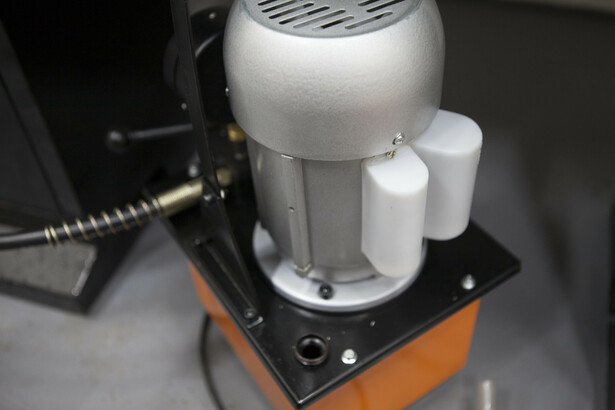 - Процесс гибки (движение штока гидроцилиндра) происходит за счёт электродвигателя