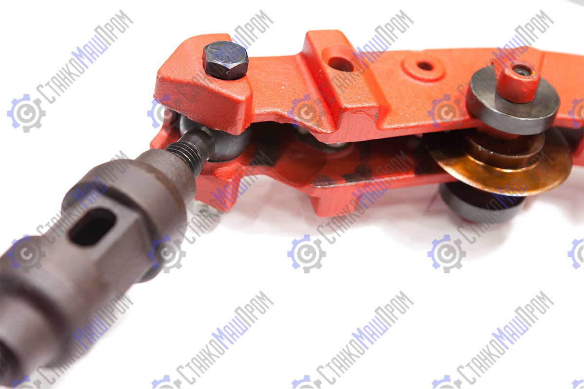 - Труборез работает с минимальным вращением 45°, в том числе в ограниченном пространстве, за счёт проворота рамы рычагом вращения (на раме станка – находятся 6 площадок для вращения)