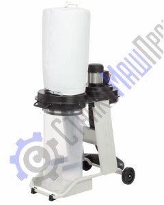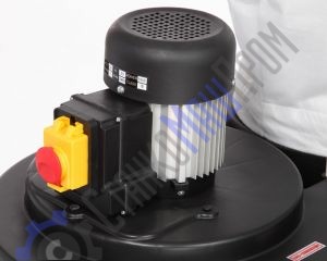 Установка имеет классическую компоновку: центробежный вентилятор, через который проходит стружка, а рядом с ним, на одной вертикальной оси, фильтр-мешок и под ним мешок-стружкосборник.Воздух со стружками засасывается через отверстие и попадает в фильтр-мешок, откуда воздух выходит наружу, а стружки и опилки падают вниз.Вместо стружкосборника можно использовать стандартные мусорные пакеты.