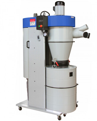 Установка имеет две ступени очистки. Сначала воздух с отходами резания подается в циклон, где происходит первичная очистка, а затем поступает в фильтр-картридж, на вторую ступень – тонкую очистку.