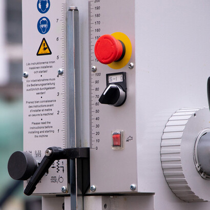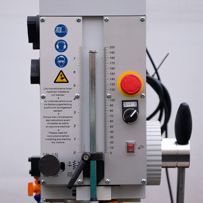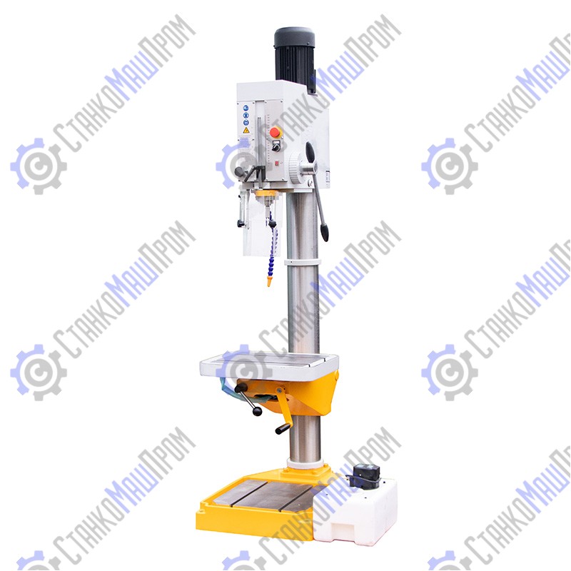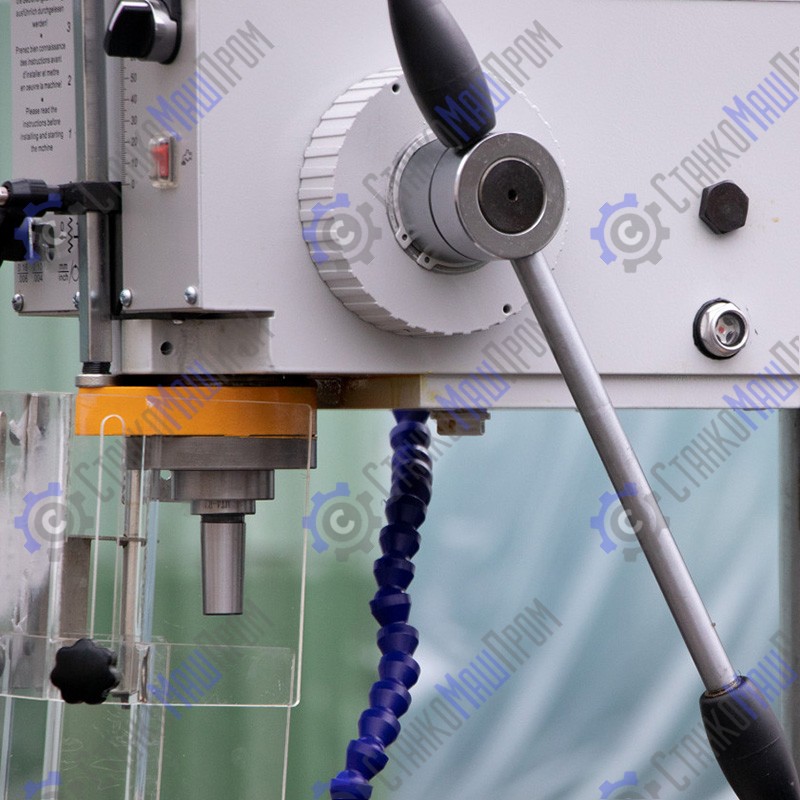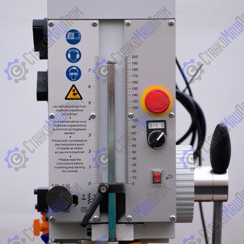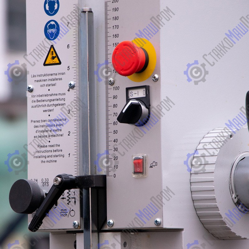 Станок обладает рядом особенностей. Данная модель произведена в напольном исполнении и требует надёжной установки на анкерные болты. Отдельно стоить отметить регулируемую автоматическую вертикальную подачу пиноли при сверлении с автоматическим отключением на заданную глубину. 8 скоростной редукторный привод с удобным переключением оборотов. Мощный асинхронный двигатель выдерживающий высокие нагрузки.